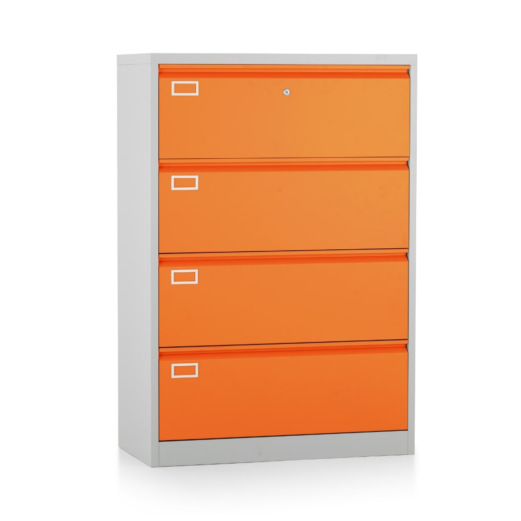 Dvojradová kovová kartotéka A4 - 4 zásuvky, 90 x 45 x 132 cm, cylindrický zámok, oranžová - ral 2004
