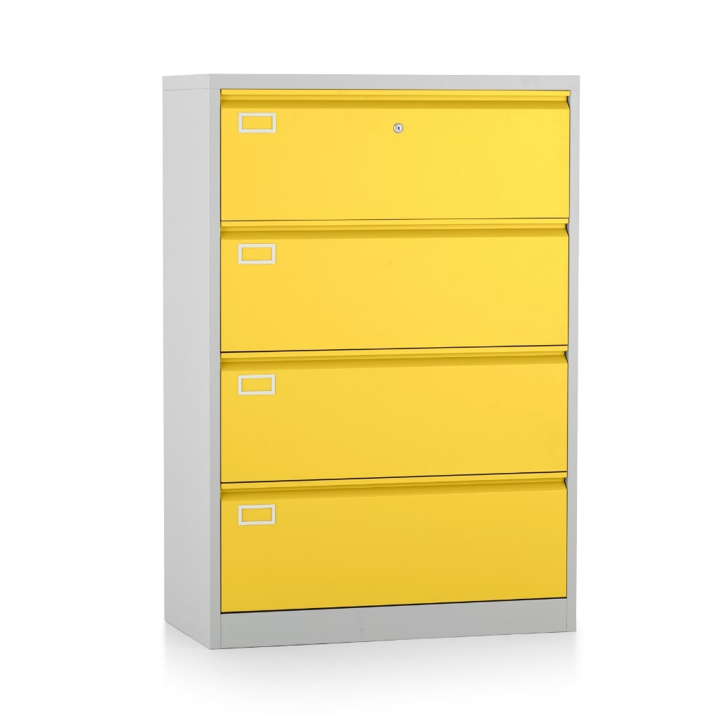 Dvojradová kovová kartotéka A4 - 4 zásuvky, 90 x 45 x 132 cm, cylindrický zámok, žltá - ral 1023