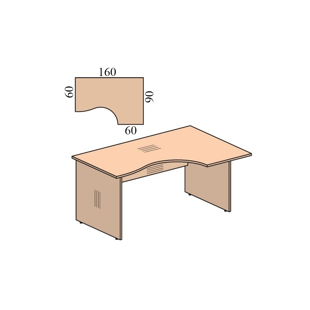 Ergonomický stôl Impress s rozmermi 160 x 90 cm odporúčame najmä do kancelárií zamestnancov a nižšieho manažmentu. Ide o cenovo najvýhodnejší nábytkový rad, ktorý sa hodí do uzavretých, ale aj open space kancelárií. Vďaka špeciálnemu rohovému tvaru vám umožní využiť akýkoľvek priestor.