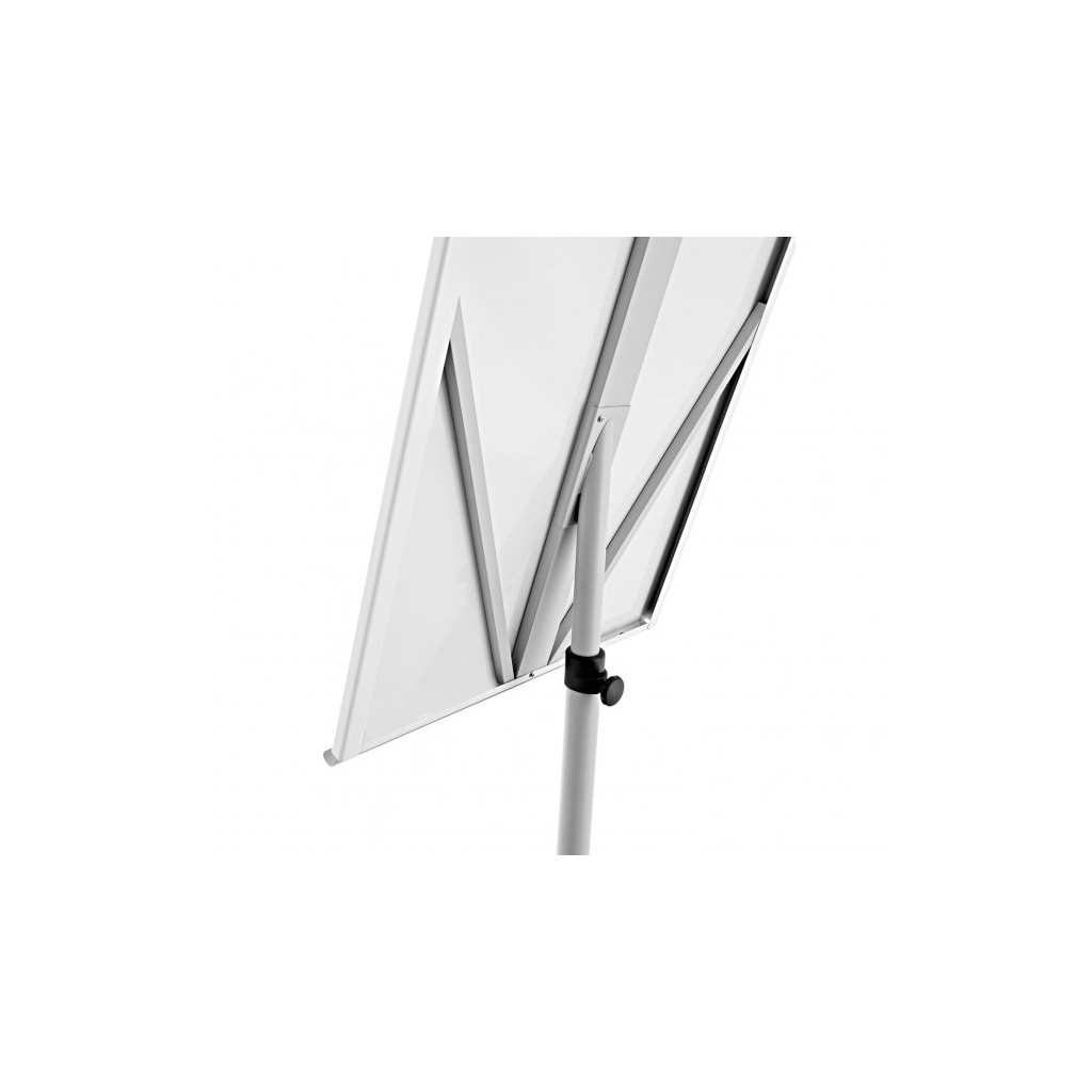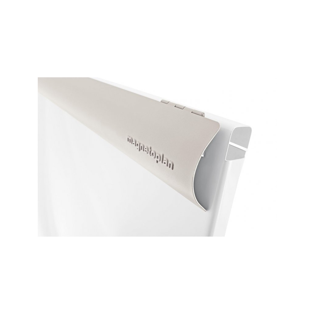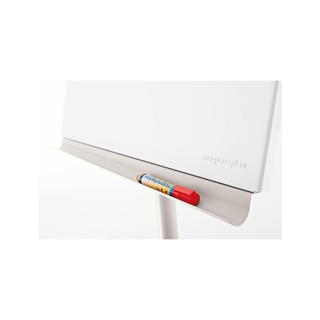 Flipchart s rozmermi pracovnej plochy 68 x 97 cm disponuje vysúvacími ramenami, ktoré rozšíria plochu až trojnásobne. Je vybavený magnetickým popisovateľným povrchom v bielej farbe, ktorý je určený na popisovanie fixkami, ktoré jednoducho zotriete nasucho. Okrem písania však môžete využiť aj magnety na pripnutie všetkých dôležitých dokumentov, ktoré tak budete mať stále na očiach. Flipchart Magnetoplan ponúka aj vyklápaciu lištu s háčikmi na upevnenie klasického flipchart papiera.