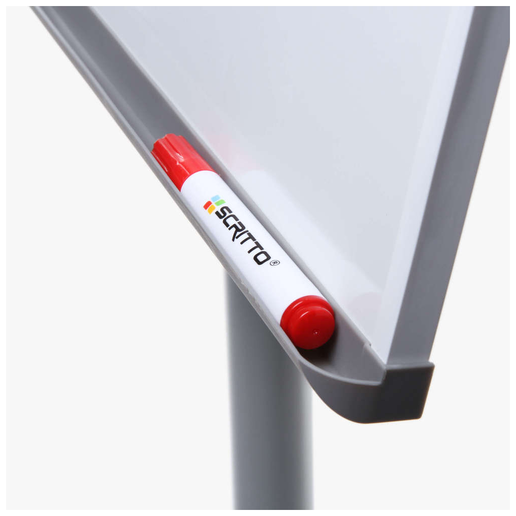 Flipchart dodávame vrátane odkladacieho držiaka, ktorý vám poslúži napríklad na odloženie fixiek, magnetov či iných drobností.