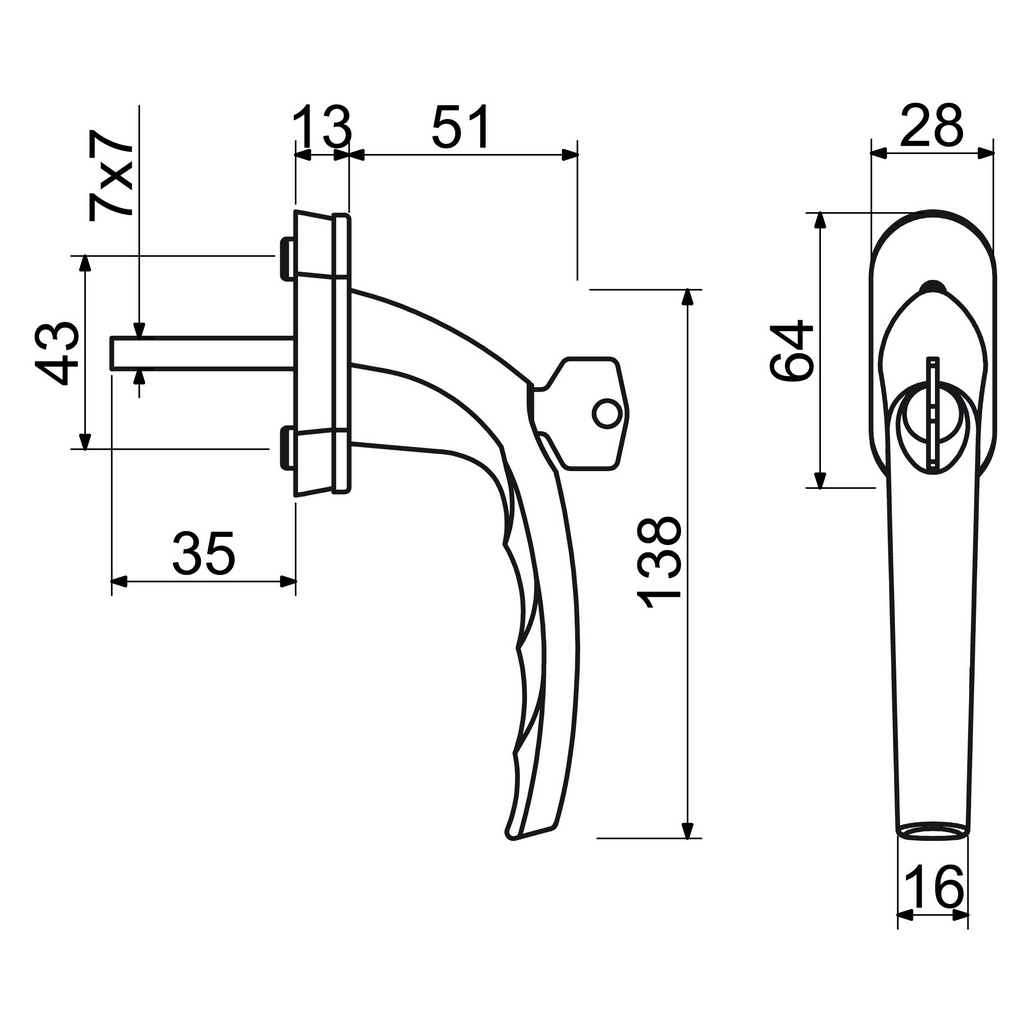 Hliníková okenná kľučka RHW.009 L, bronzová
