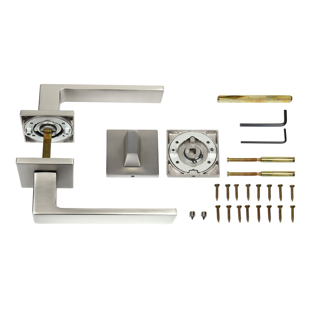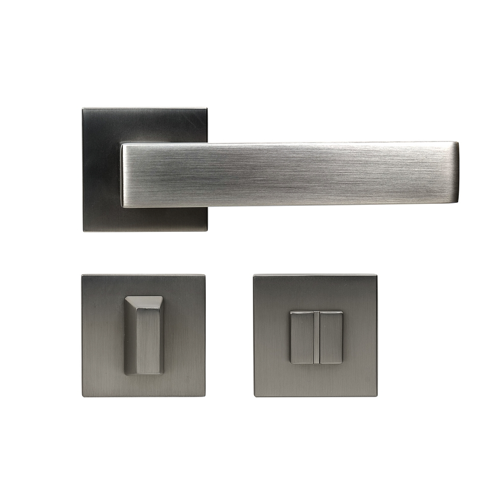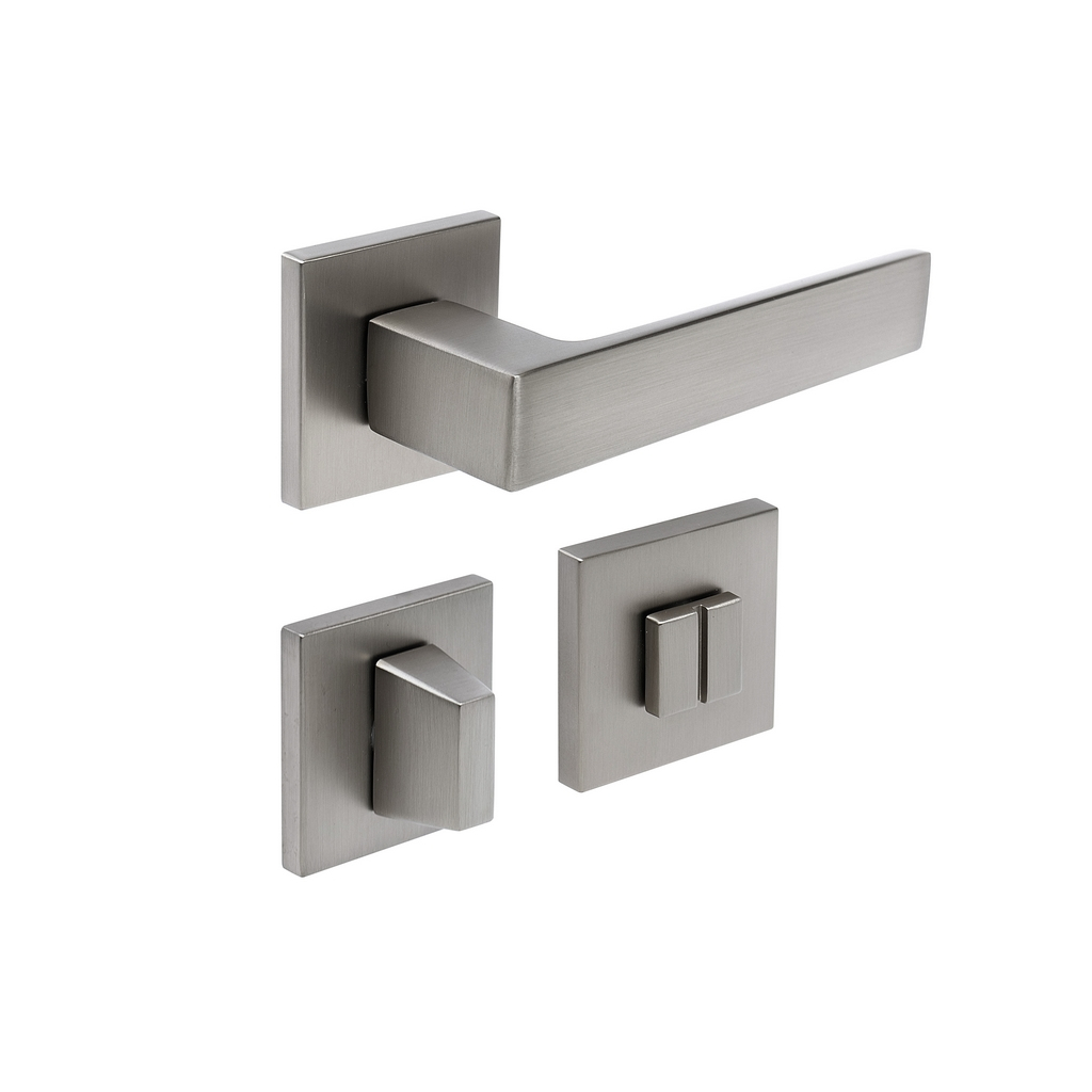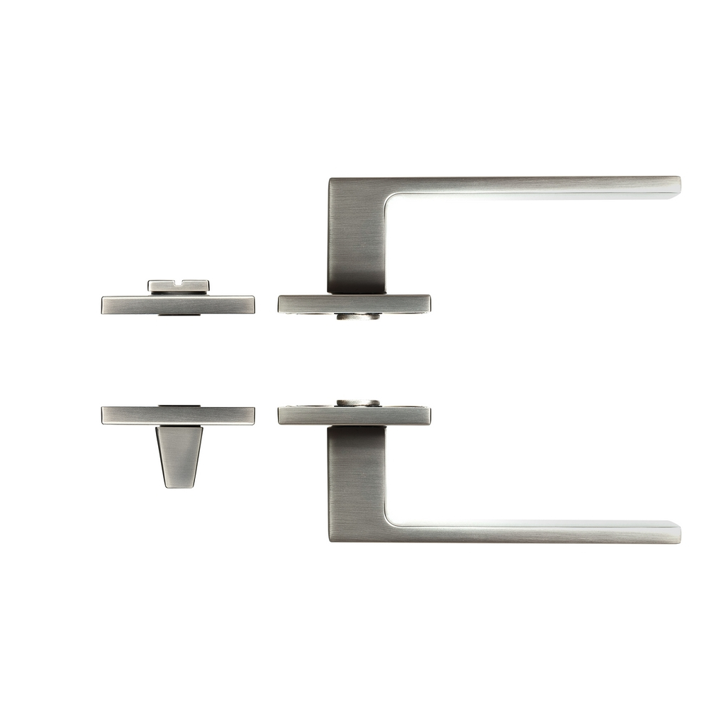 Elegantným dizajnom zaoblených pravých uhlov sa rozetové kovanie Garda priamo ponúka do moderne ladených interiérov. Tento model ponúka konfiguráciu kľučka + kľučka a rozetu s WC zámkom.
