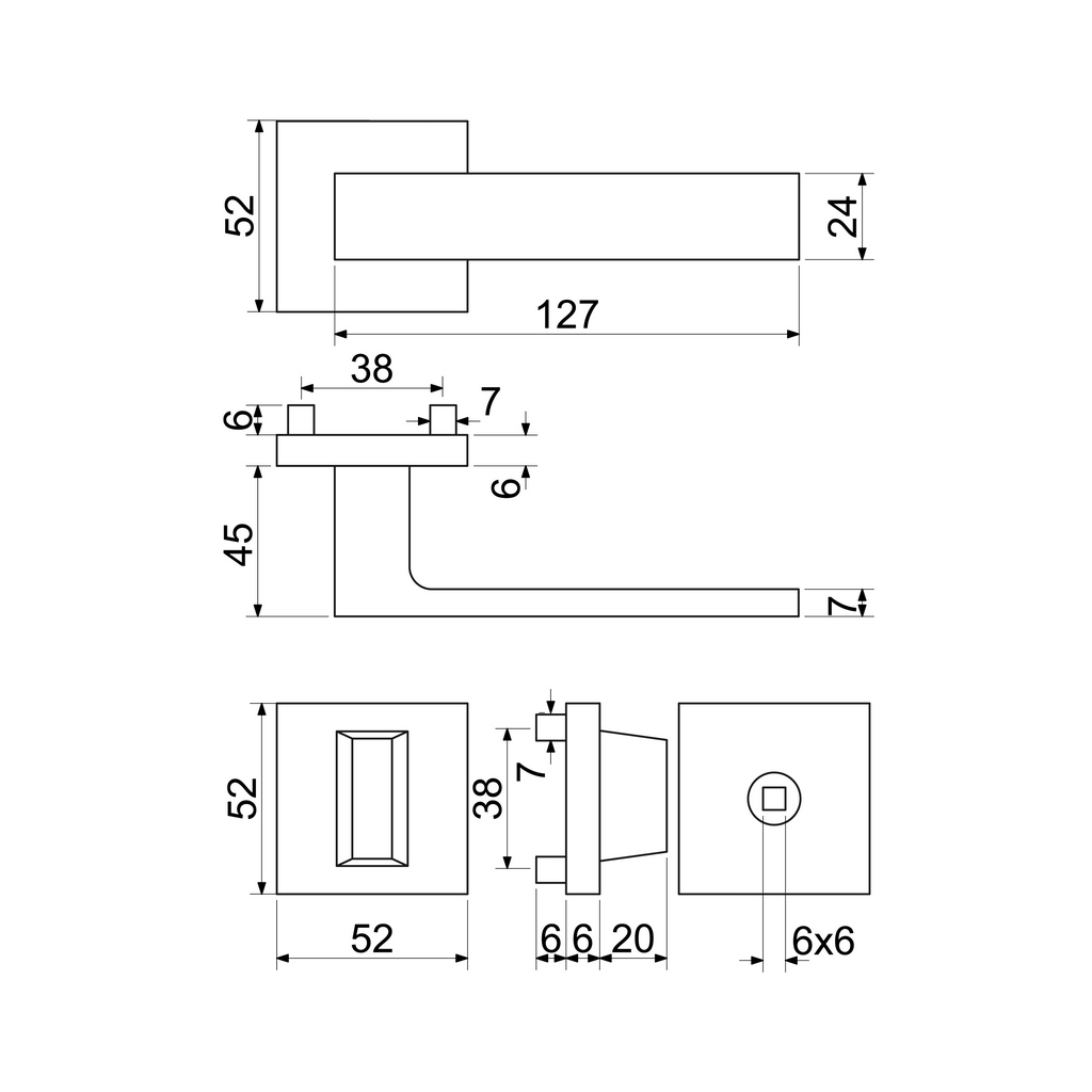 - štvorhran 6 × 6 mm, redukcia 6/8 mm