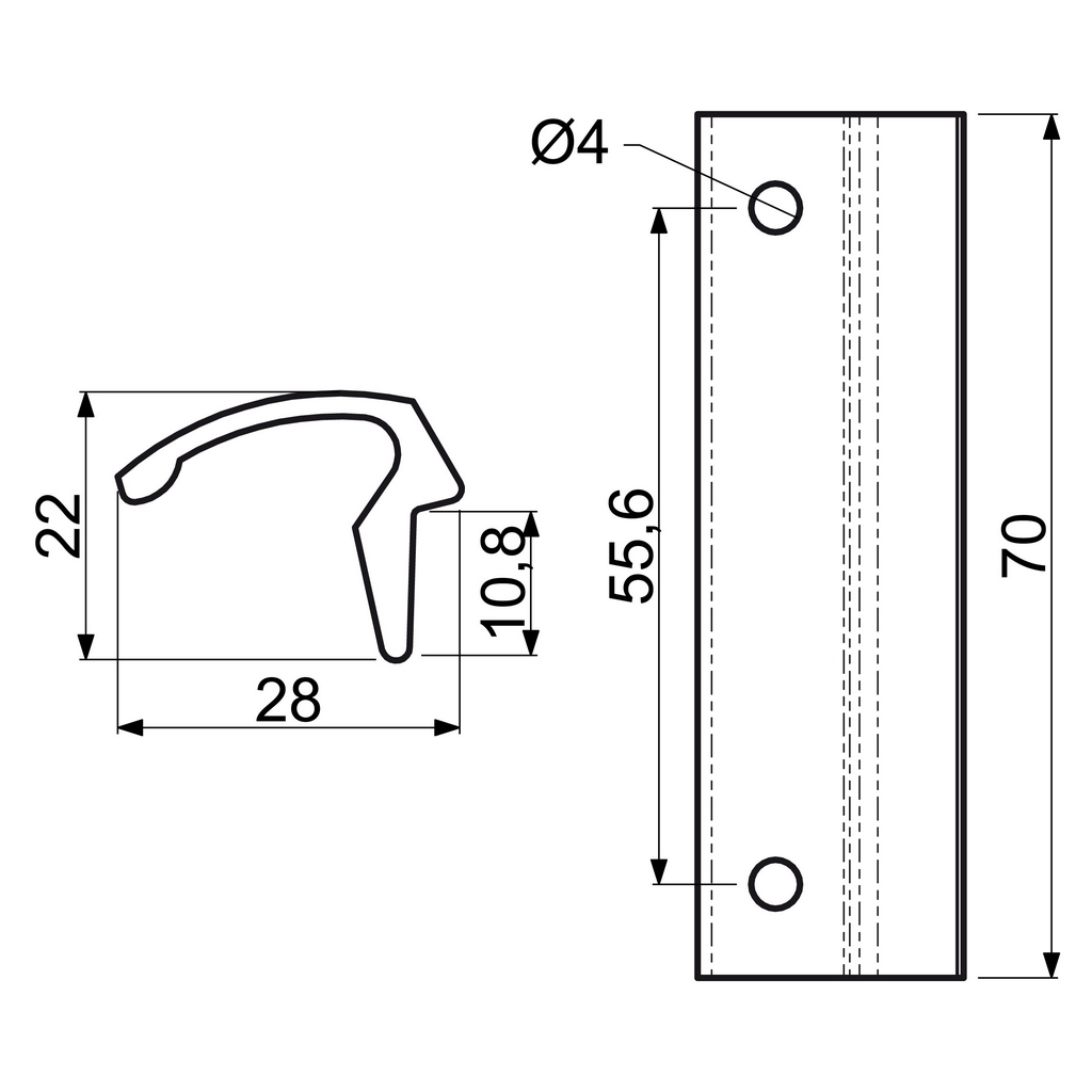 - 4mm otvory sú od seba vzdialené 55,6 mm