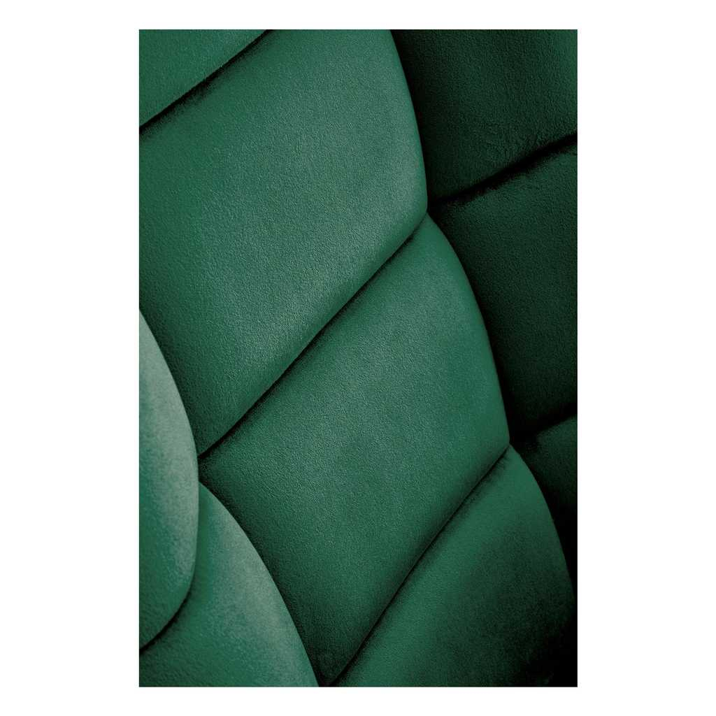 Nohy a lamely kresla sú vyrobené z práškovo lakovanej ocele a masívneho dreva - materiálov známych svojou odolnosťou a stabilitou. Kreslo unesie až 120 kg. Zamatový látkový poťah pohladí pokožku a posunie relaxáciu na vyššiu úroveň. Prešívané čalúnenie na operadle prispieva k atraktívnemu dizajnu.