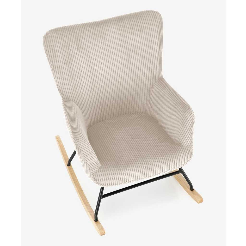 Sedadlo kresla je čalúnené látkou s výraznou vrúbkovanou štruktúrou, ktorá mu dodáva zaujímavý vzhľad. Vďaka čalúneniu a podrúčkam je vaše pohodlie zaručené.