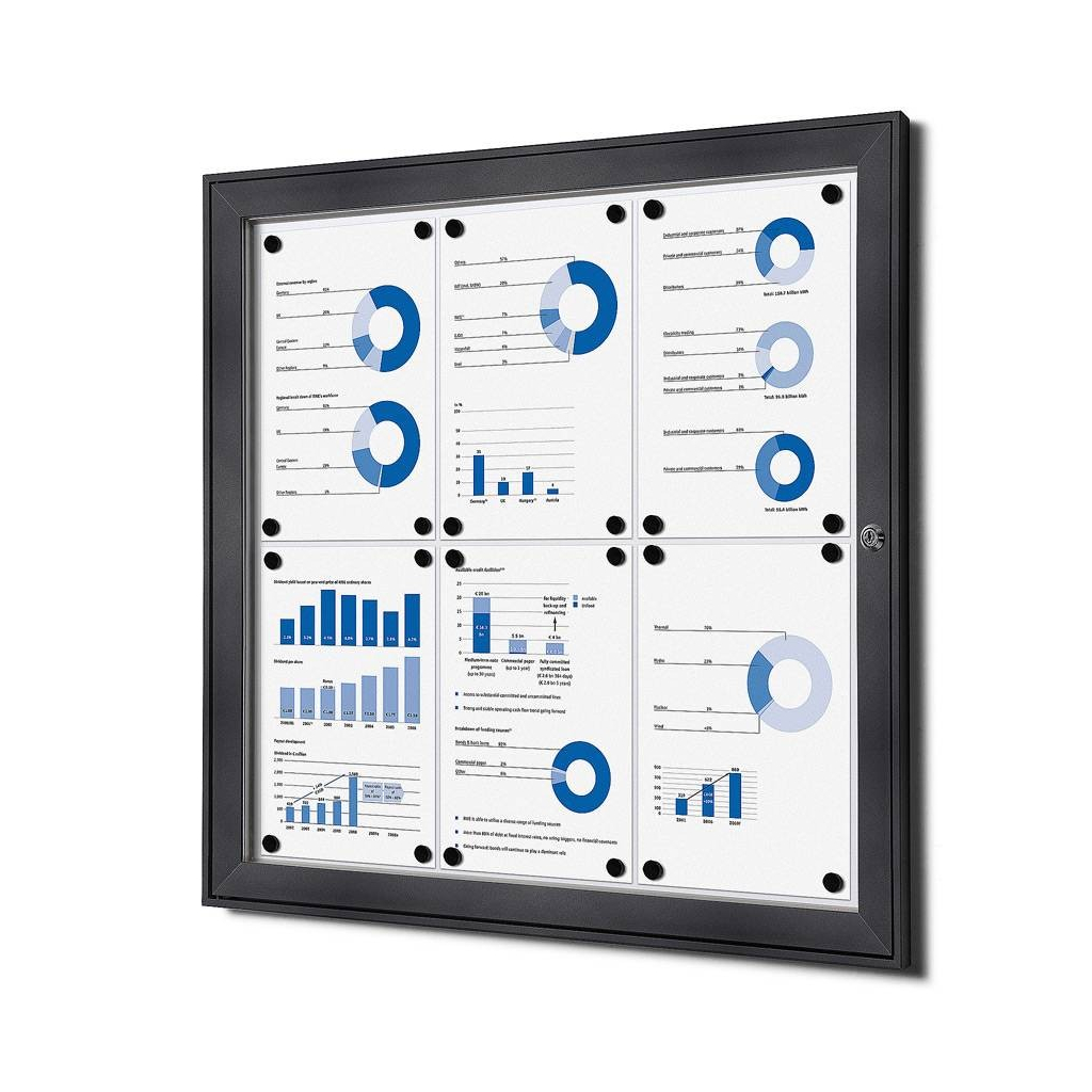 Vitrína vo formáte 6 x A4 disponuje magnetickým popisovateľným povrchom v bielej farbe. Ten je určený na popisovanie fixkami, ktoré ľahko zotriete nasucho. Okrem písania môžete využiť aj magnety na pripnutie všetkých dôležitých dokumentov, ktoré tak budete mať stále na očiach.