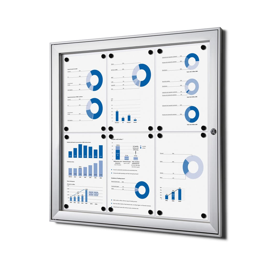 Vitrína vo formáte 6 x A4 disponuje magnetickým popisovateľným povrchom v bielej farbe. Ten je určený na popisovanie fixkami, ktoré ľahko zotriete nasucho. Okrem písania môžete využiť aj magnety na pripnutie všetkých dôležitých dokumentov, ktoré tak budete mať stále na očiach.
