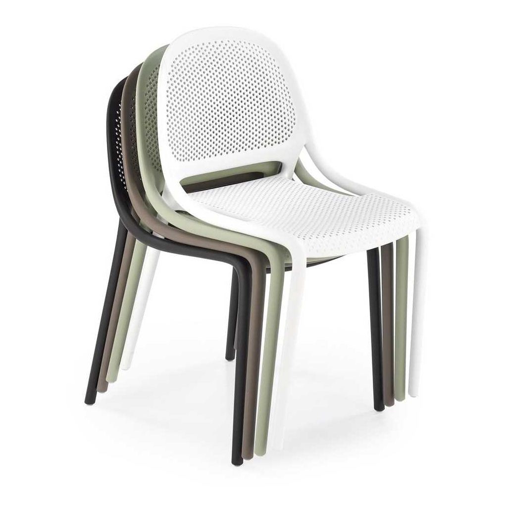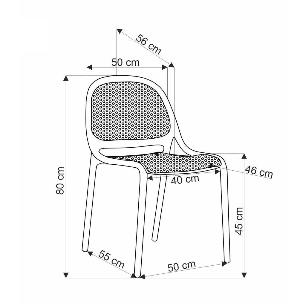 Celá konštrukcia stoličky je vyrobená z polypropylénu - pevného plastu, ktorý odolá všetkým poveternostným podmienkam. Perforovaný povrch sedadla a operadla je veľmi dobre odvetraný, čo je užitočné najmä v letných horúčavách.