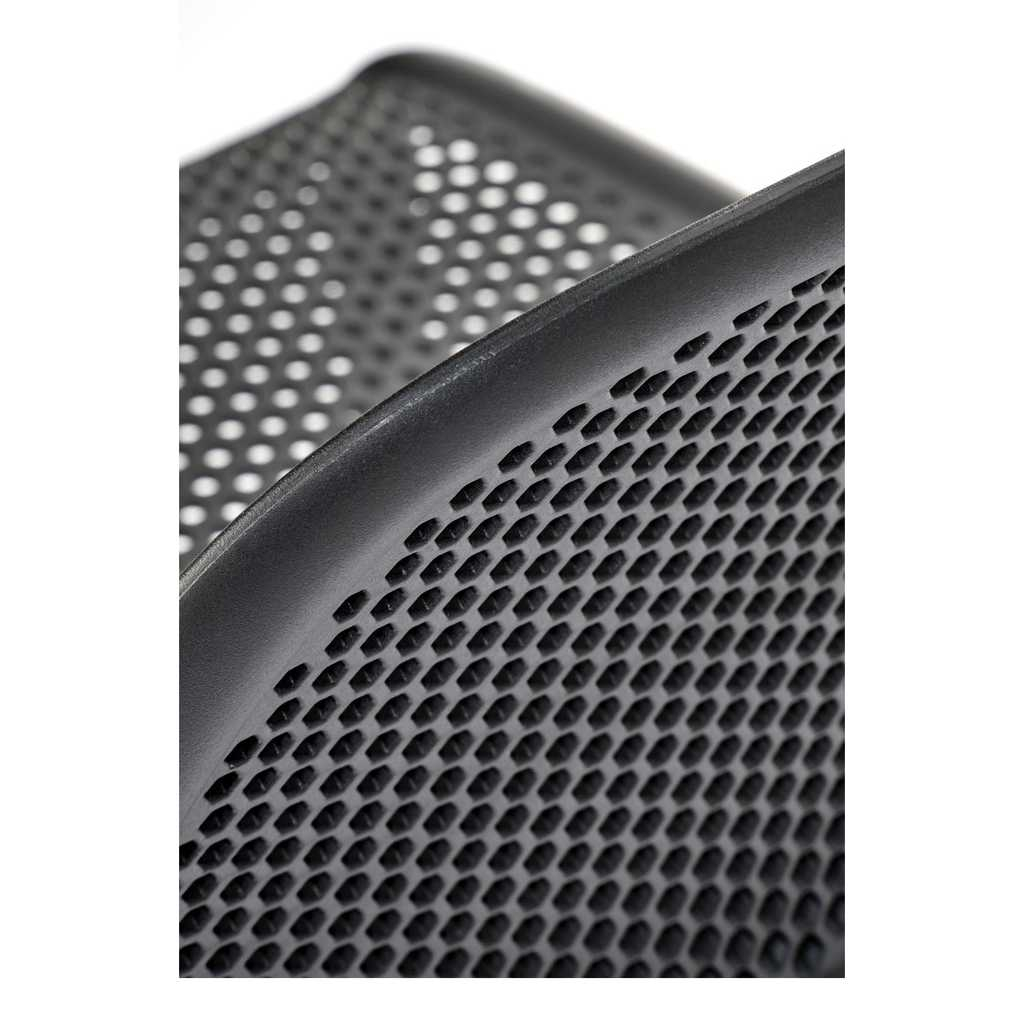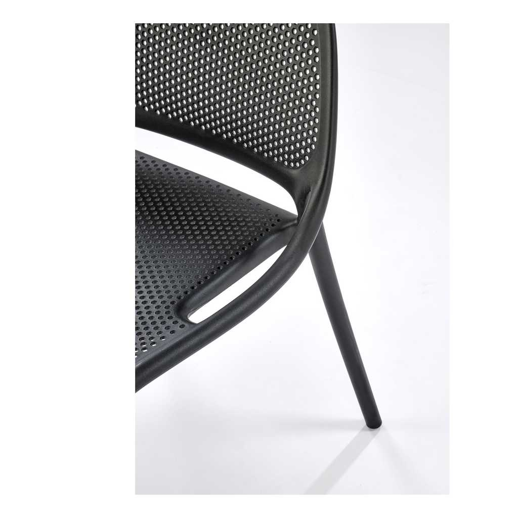 Celá konštrukcia stoličky je vyrobená z polypropylénu - pevného plastu, ktorý odolá všetkým poveternostným podmienkam. Perforovaný povrch sedadla a operadla je veľmi dobre odvetraný, čo je užitočné najmä v letných horúčavách.