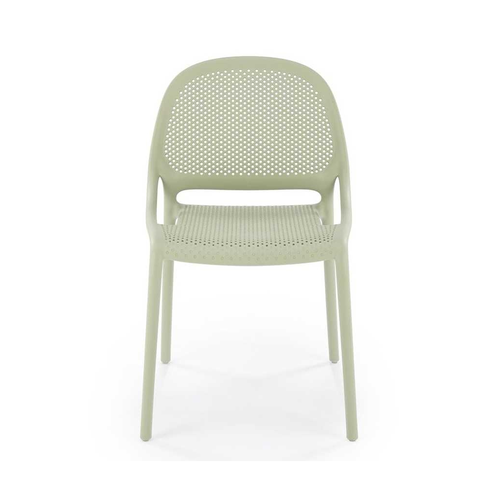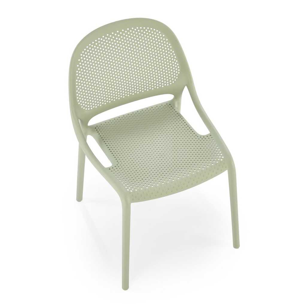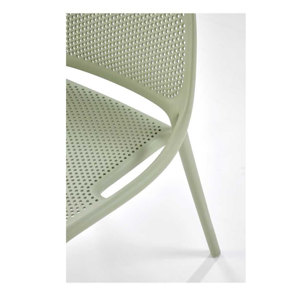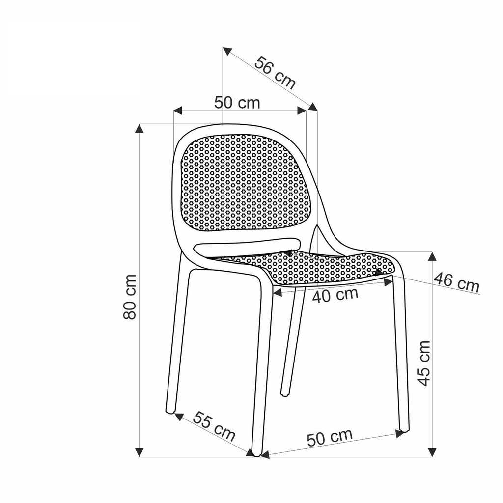 Celá konštrukcia stoličky je vyrobená z polypropylénu - pevného plastu, ktorý odolá všetkým poveternostným podmienkam. Perforovaný povrch sedadla a operadla je veľmi dobre odvetraný, čo je užitočné najmä v letných horúčavách.