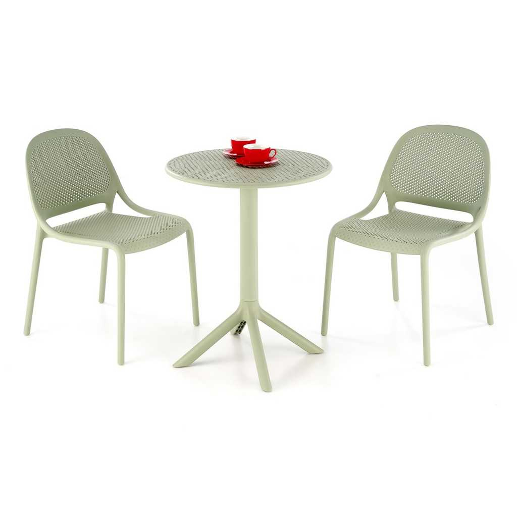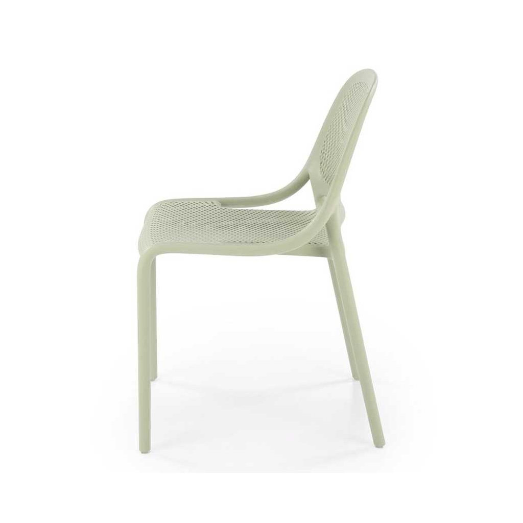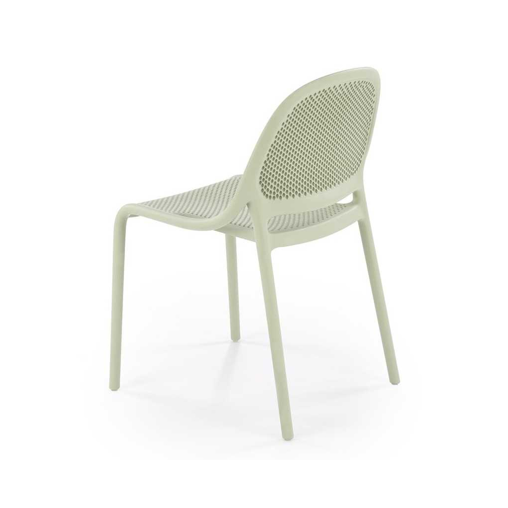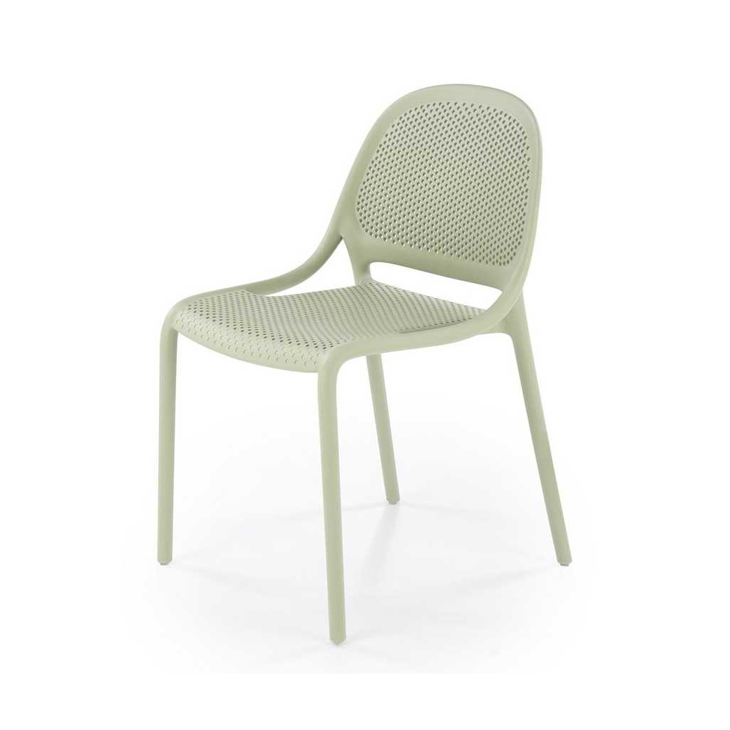 Celá konštrukcia stoličky je vyrobená z polypropylénu - pevného plastu, ktorý odolá všetkým poveternostným podmienkam. Perforovaný povrch sedadla a operadla je veľmi dobre odvetraný, čo je užitočné najmä v letných horúčavách.