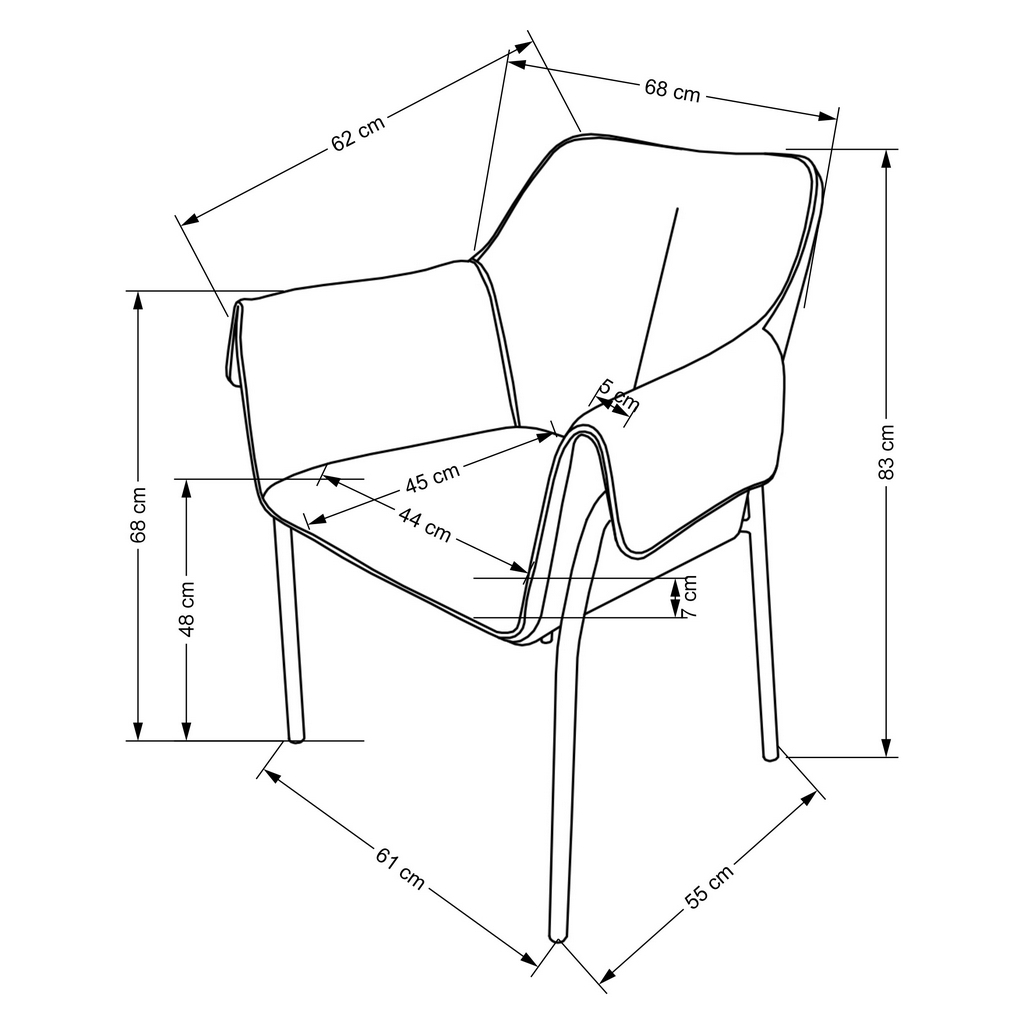 Jedálenská stolička Andras svojim vzhľadom pripomína kreslo v decentnom dizajne. Vkusne doplní tradičnejšie zariadený interiér, nestratí sa ale ani v modernej jedálni alebo lobby.