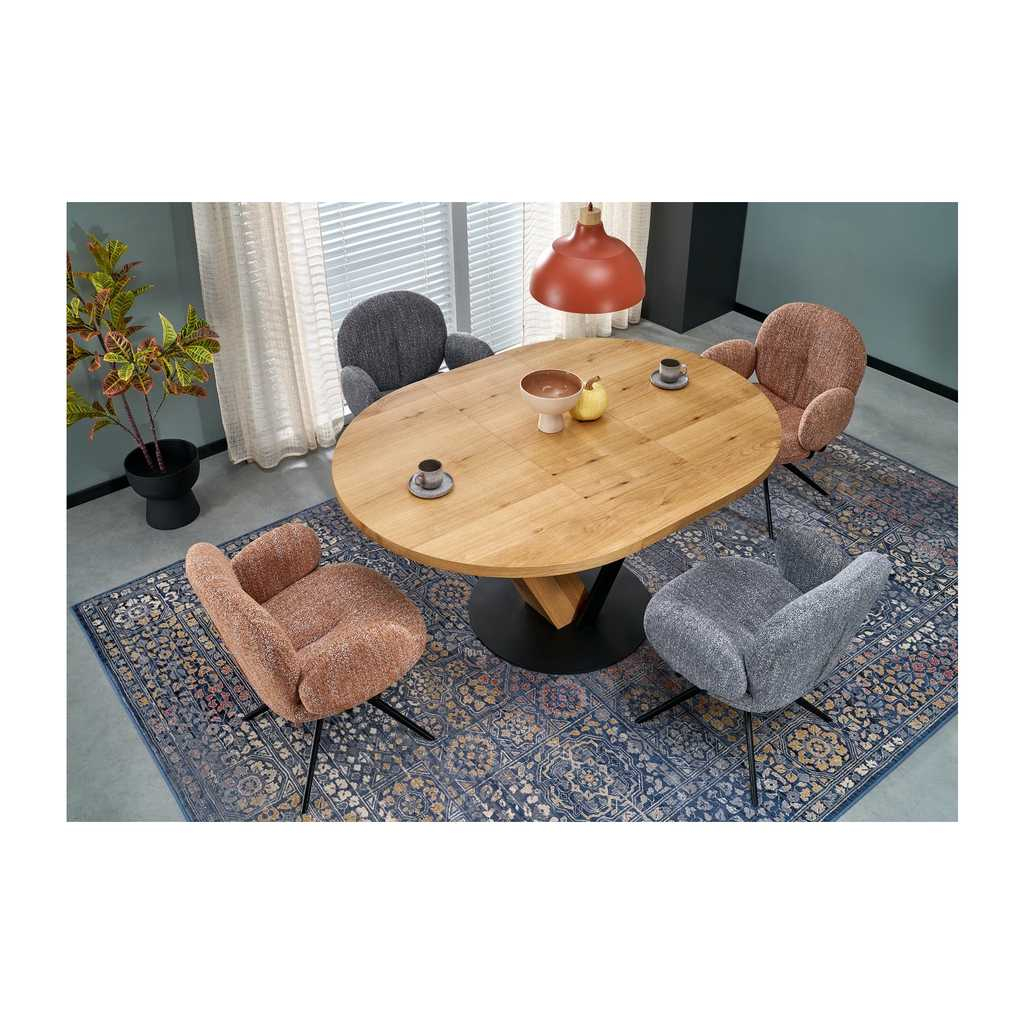 Jedálenská stolička Atkins ponúka jedinečný komfort a moderný dizajn, ktorý sa hodí do každej jedálne. Vďaka kvalitnej látke na sedadle zabezpečuje pohodlné sedenie počas dlhých rodinných obedov alebo večerí. Kovová podnož garantuje stabilitu a dlhú životnosť stoličky.