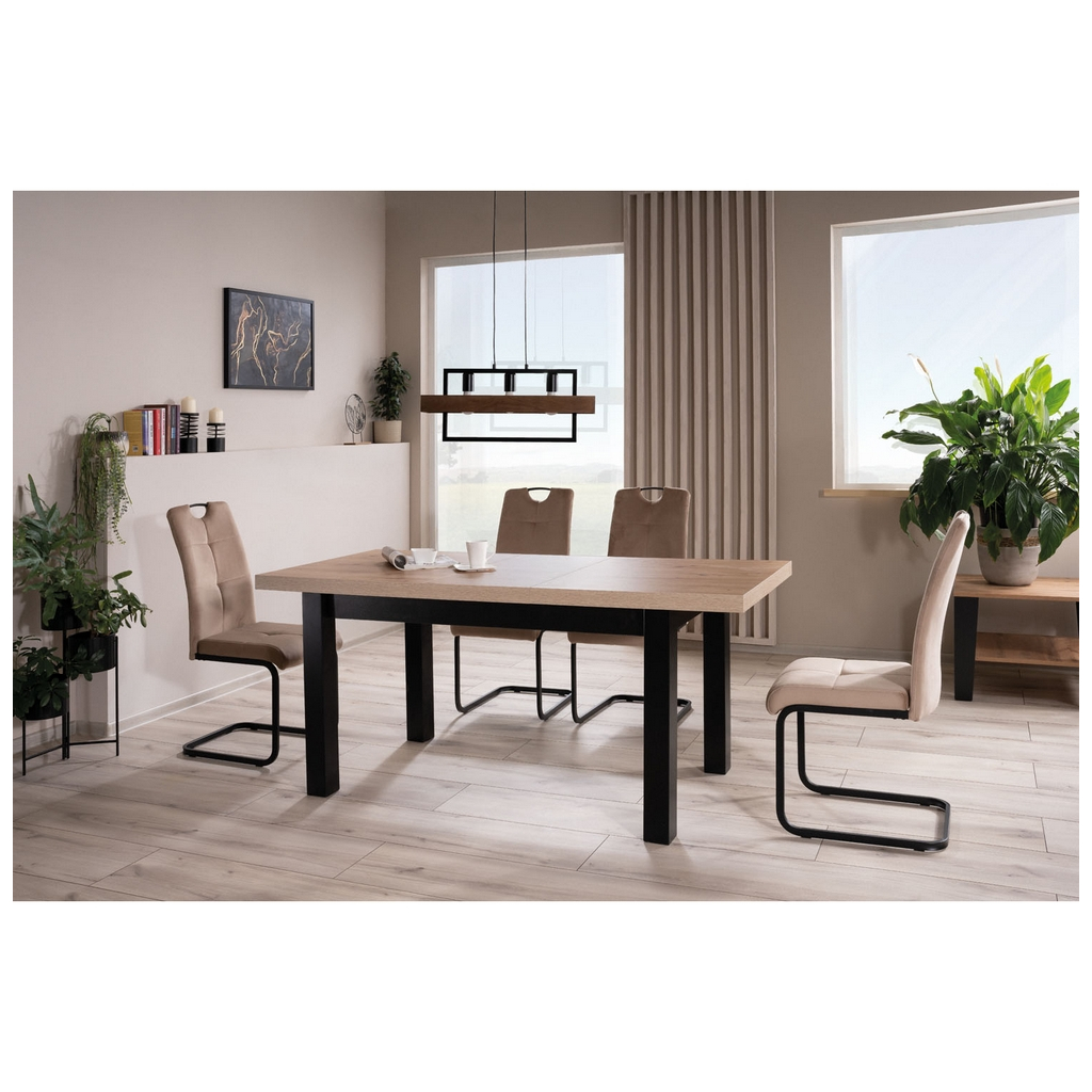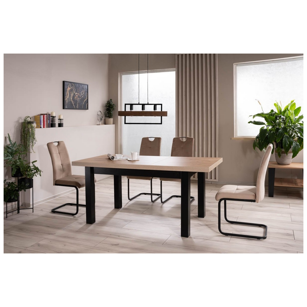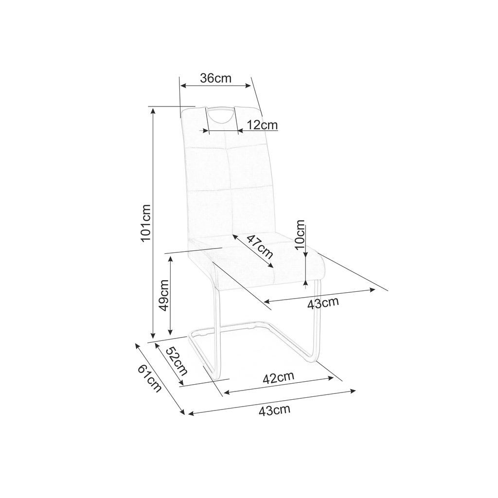 Sedák stoličky je čalúnený mäkkou, na dotyk príjemnou zamatovou látkou, ktorá poskytuje nielen pohodlie, ale aj výrazný vizuálny prvok vďaka prešívaniu. Mäkké polstrovanie sedadla zaisťuje komfort aj počas dlhšieho sedenia, či už pri večeri s rodinou, alebo pri dlhých večerných rozhovoroch s priateľmi.