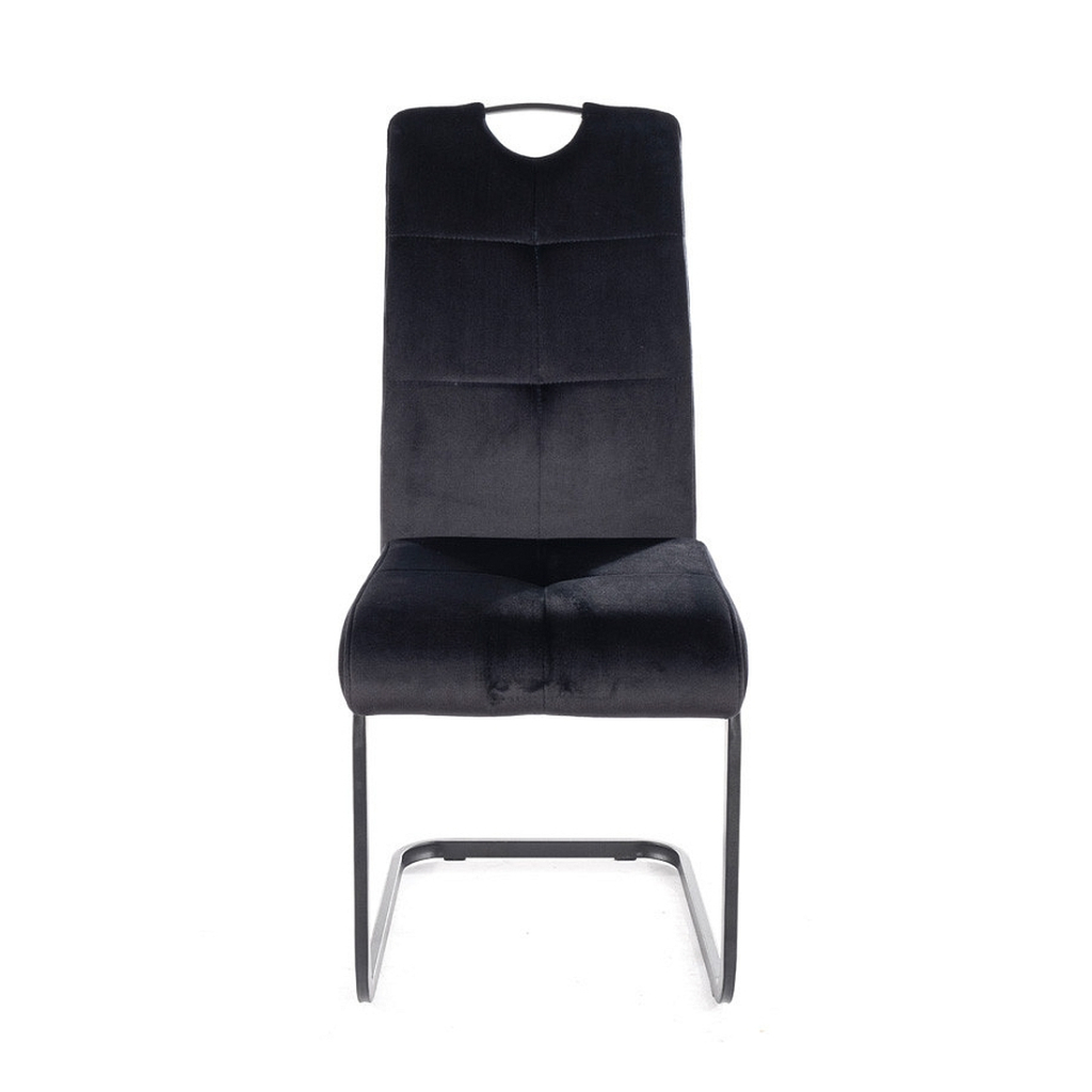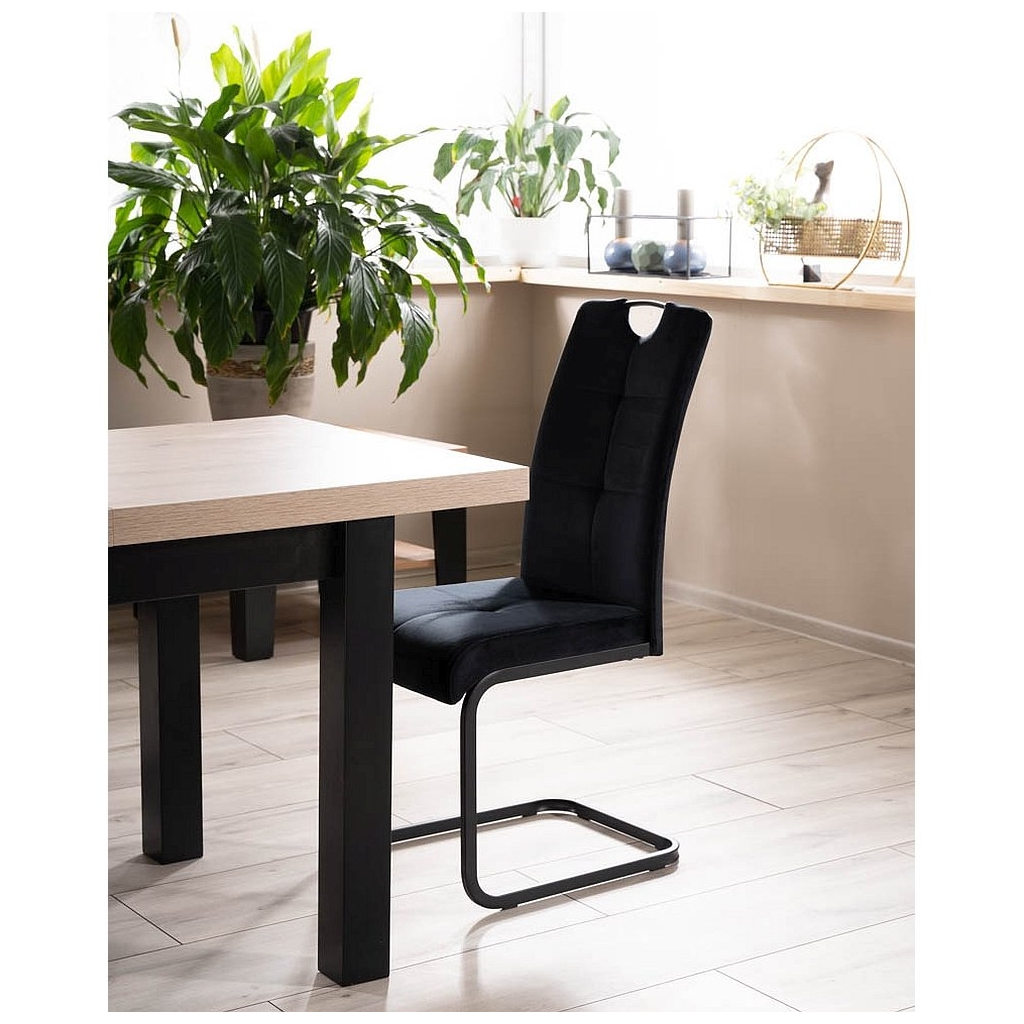 Sedák stoličky je čalúnený mäkkou, na dotyk príjemnou zamatovou látkou, ktorá poskytuje nielen pohodlie, ale aj výrazný vizuálny prvok vďaka prešívaniu. Mäkké polstrovanie sedadla zaisťuje komfort aj počas dlhšieho sedenia, či už pri večeri s rodinou, alebo pri dlhých večerných rozhovoroch s priateľmi.