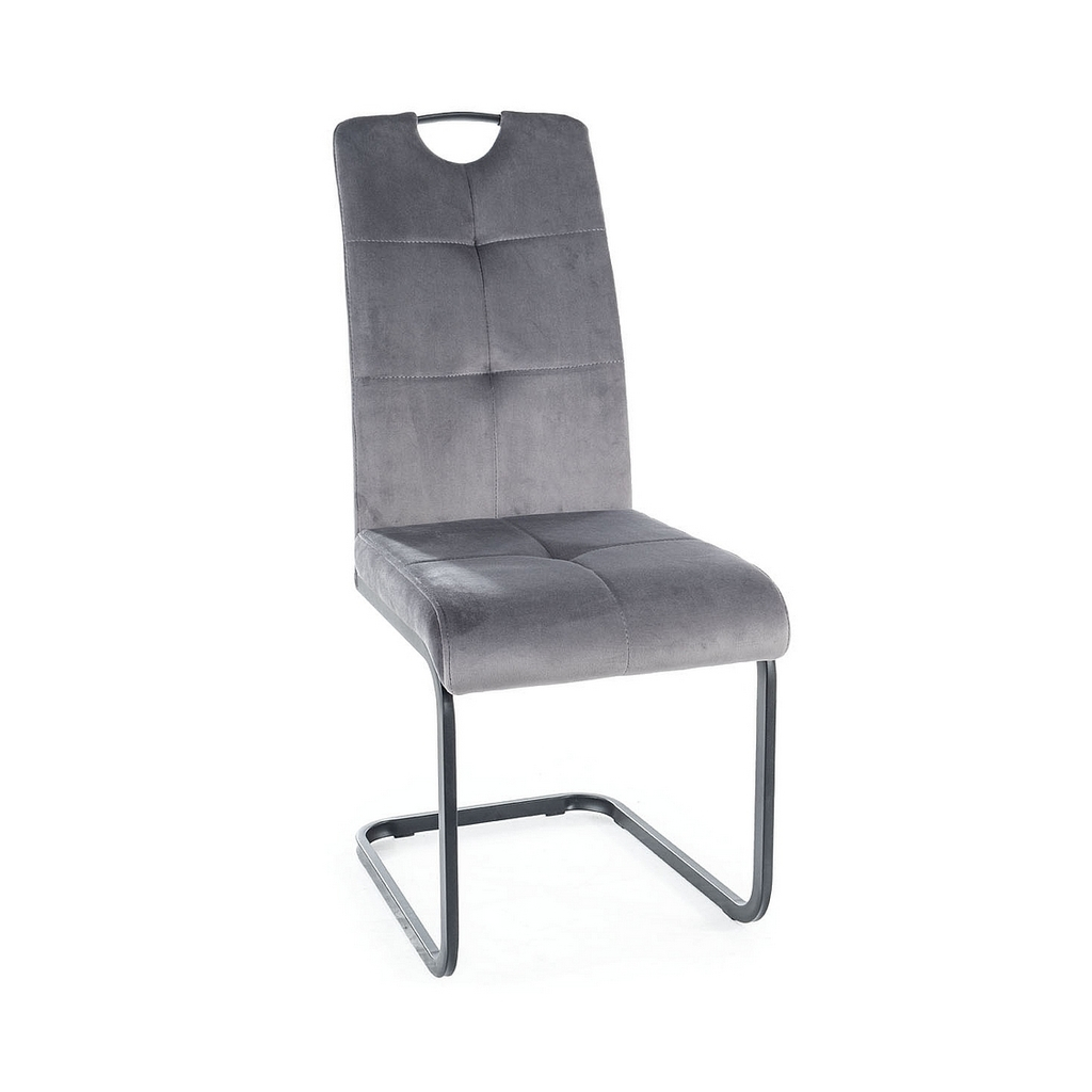 Sedák stoličky je čalúnený mäkkou, na dotyk príjemnou zamatovou látkou, ktorá poskytuje nielen pohodlie, ale aj výrazný vizuálny prvok vďaka prešívaniu. Mäkké polstrovanie sedadla zaisťuje komfort aj počas dlhšieho sedenia, či už pri večeri s rodinou, alebo pri dlhých večerných rozhovoroch s priateľmi.