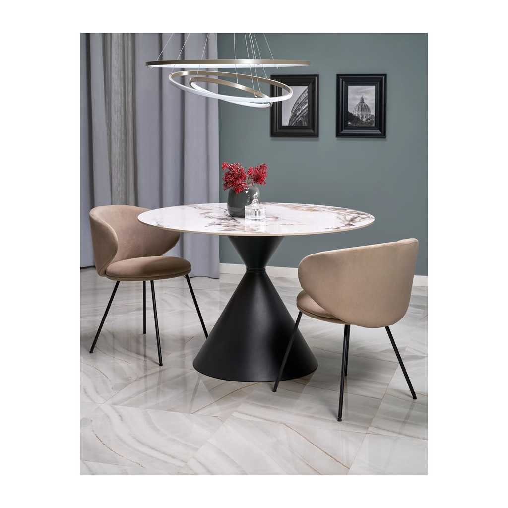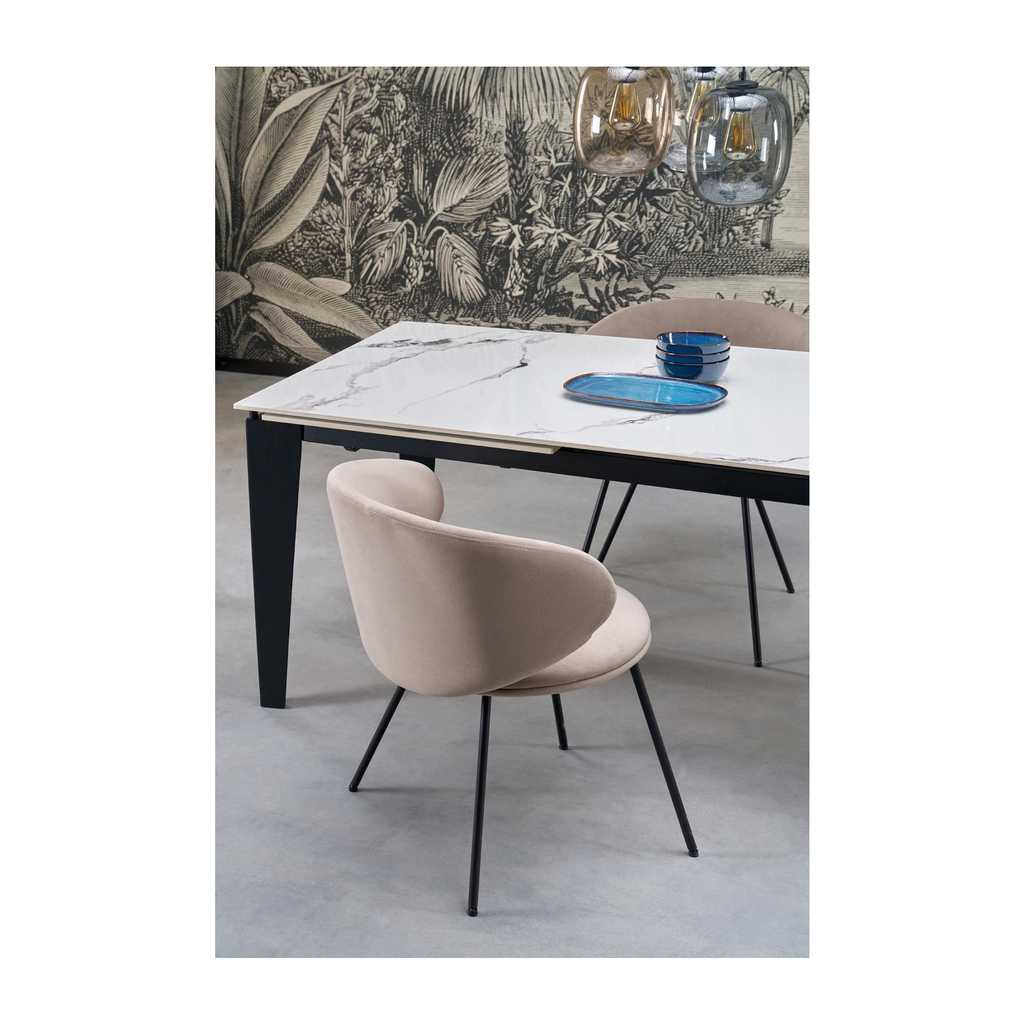 Jedálenská stolička Barbara kombinuje pohodlie a moderný dizajn, ktorý bude štýlovým doplnkom každej jedálne alebo kuchyne. Je čalúnená mäkkou látkou z jemného zamatu, ktorá zabezpečuje príjemný pocit pri sedení. Stabilnú konštrukciu tvorí odolná kovová podnož, ktorá zaručuje dlhú životnosť a spoľahlivosť pri každodennom používaní.