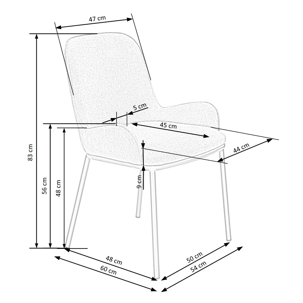Bellamy je modernou jedálenskou stoličkou s jednoduchým, ale praktickým dizajnom. Operadlo i sedadlo sú čalúnené látkou, aby sa vám sedelo pohodlne, kovová podnož zase zaistí stabilitu.