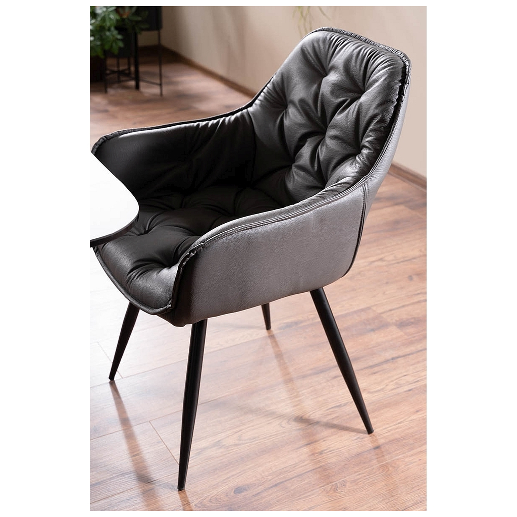 Štvornohá kovová podnož nielen, že je zárukou perfektnej stability, ale zároveň dodáva stoličke štýl. V kombinácii so sedákom potiahnutým elegantnou eko kožou s efektným prešívaním tvorí dohromady moderný a vkusný kúsok. Polstrovanie priamo nabáda k sadnutiu.