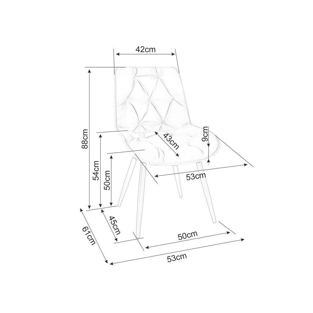 Štvornohá kovová podnož nielen, že je zárukou perfektnej stability, ale zároveň dodáva stoličke štýl. V kombinácii so sedákom potiahnutým zamatovo hebkou látkou s efektným prešívaním tvorí dohromady moderný a vkusný kúsok. Polstrovanie priamo nabáda k sadnutiu.