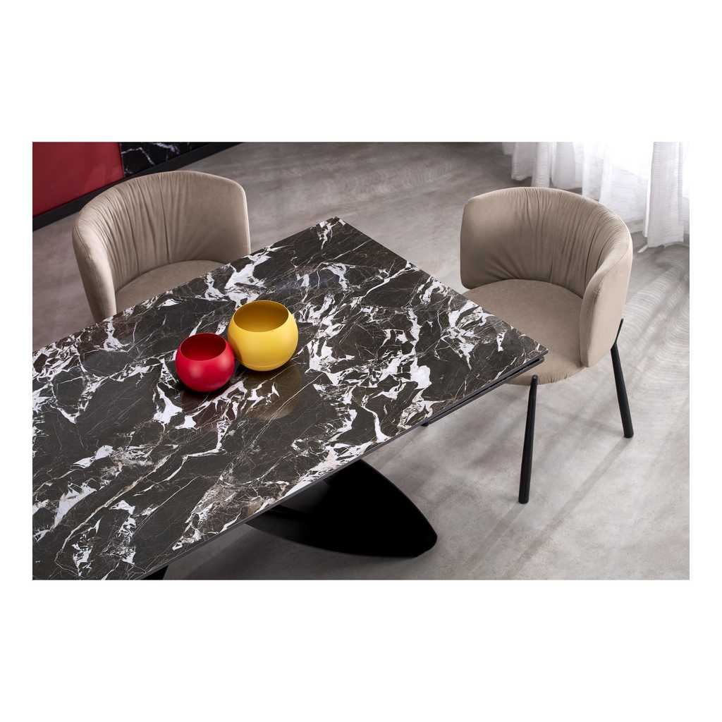 Jedálenská stolička Claire je stelesnením pohodlia a elegancie. Jej zamatové čalúnenie dodáva pocit vznešenosti a jemnosti na dotyk, zatiaľ čo jemne zaoblené línie operadla a sedadla poskytujú maximálne pohodlie a oporu pri sedení. Vďaka zamatovej textúre je stolička vhodná do moderných aj klasických interiérov, kde vynikne jej sofistikovanosť.