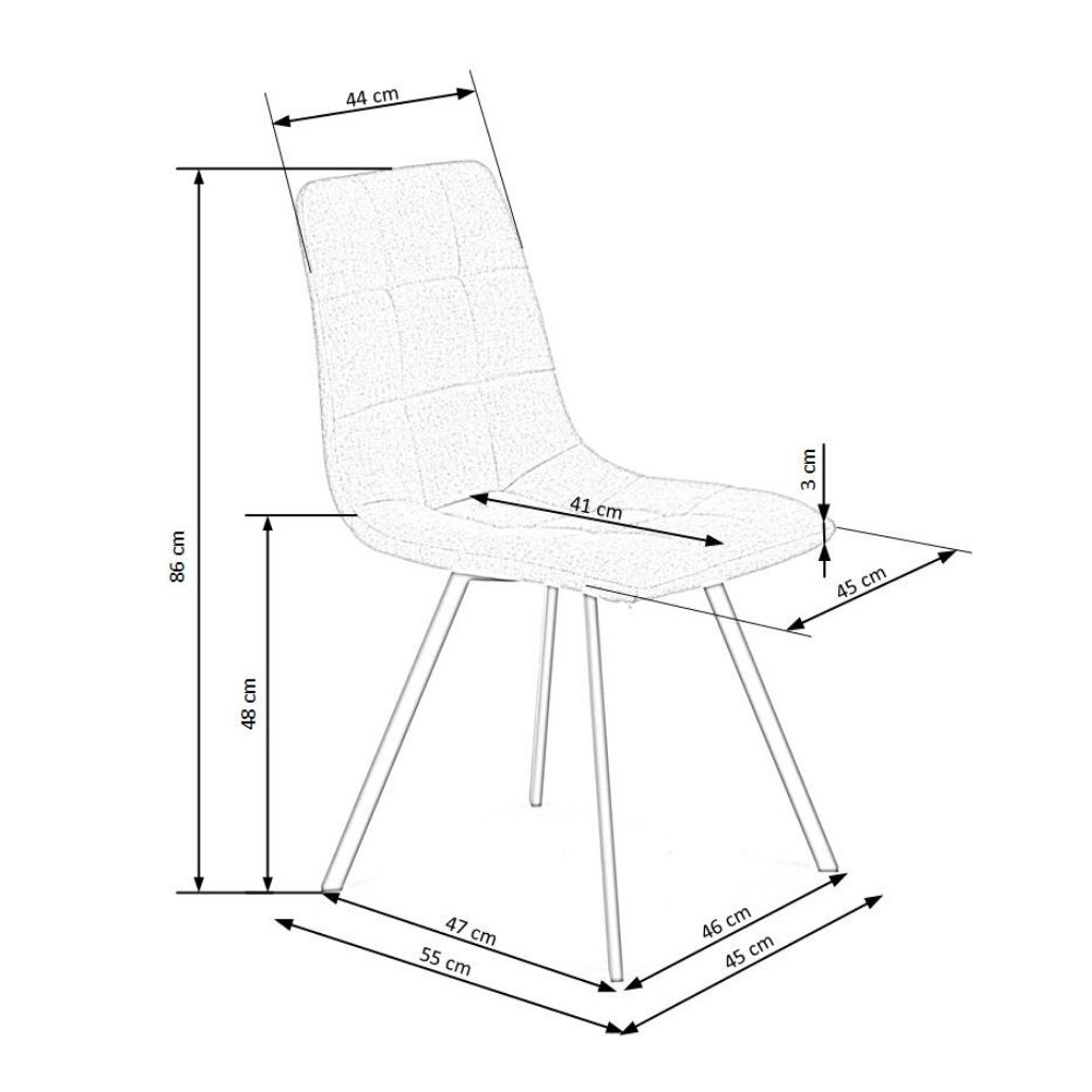 Jej luxusný vzhľad zaisťuje poťah z odolnej tkaniny, ktorý je na operadle perfektne prešívaný. Polstrované sedadlo zaistí maximálne pohodlie a kovové nohy majú potom úplnú stabilitu.