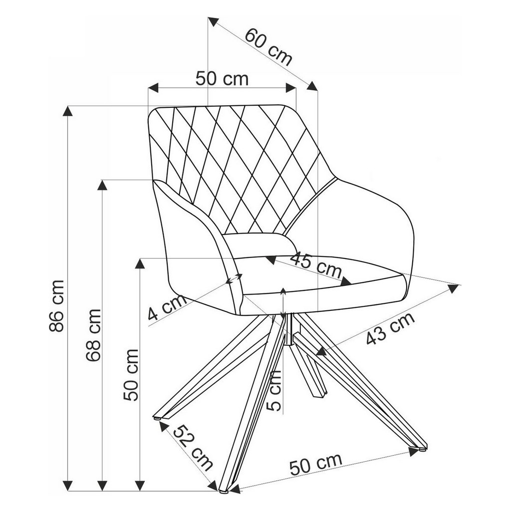 Stabilnú základňu tvoria 4 oceľové nohy s práškovou povrchovou úpravou. So sedadlom sú spojené otočným mechanizmom, ktorý umožňuje voľné otáčanie sedadla. Vďaka tomu máte pri stolovaní voľnosť pohybu.