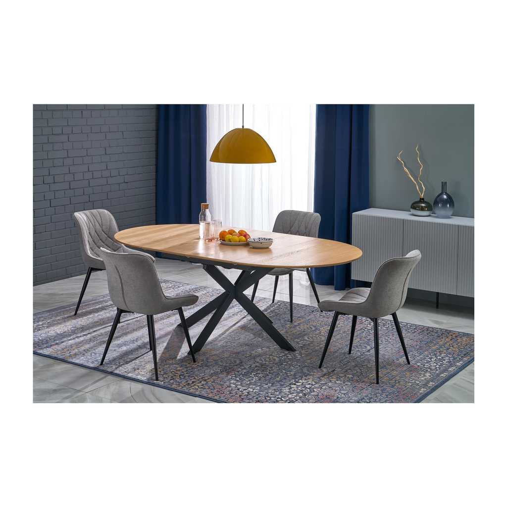 Jedálenská stolička Exeter prináša do vašej jedálne jedinečný dizajn kombinovaný s komfortom a praktickosťou. Vďaka kvalitnému látkovému sedadlu a kovovej podnoži je táto stolička stabilná a odolná, pričom zvládne zaťaženie až do 100 kg. Ergonomicky tvarované operadlo podporuje chrbát a zabezpečuje pohodlie aj pri dlhšom sedení.