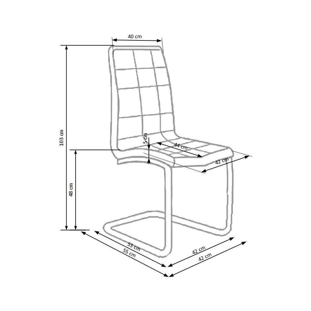 Stolička je vybavená stabilnou konštrukciou v podobe kovovej podnože v chrómovom vyhotovení. Sedák a operadlo sú čalúnené elegantnou ekokožou s nadčasovým prešívaním.