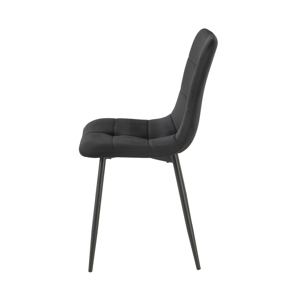 Úzke nohy z kovu dodávajú stoličke stabilitu, zároveň ale pôsobia vzdušne. O efektný vzhľad a pohodlie sa stará polstrovanie a čalúnenie zo zamatovo hebkej látky. Tá zaujme moderným prešívaním.