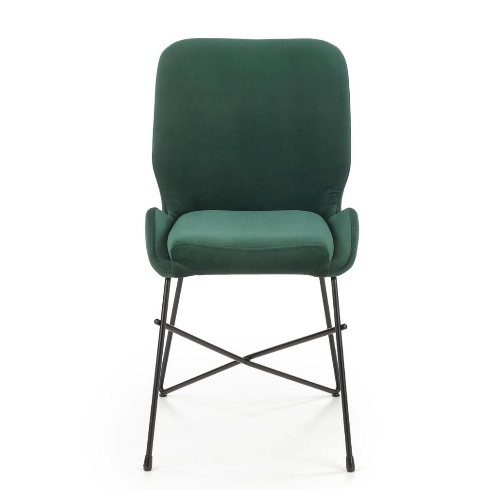 Jej elegantný vzhľad dotvára poťah z odolnej zamatovej tkaniny, ktorá je veľmi príjemná na omak. Polstrovaný sedák poskytne maximálne pohodlie. Kovové efektne krížené nohy stoličky zaistia úplnú stabilitu.