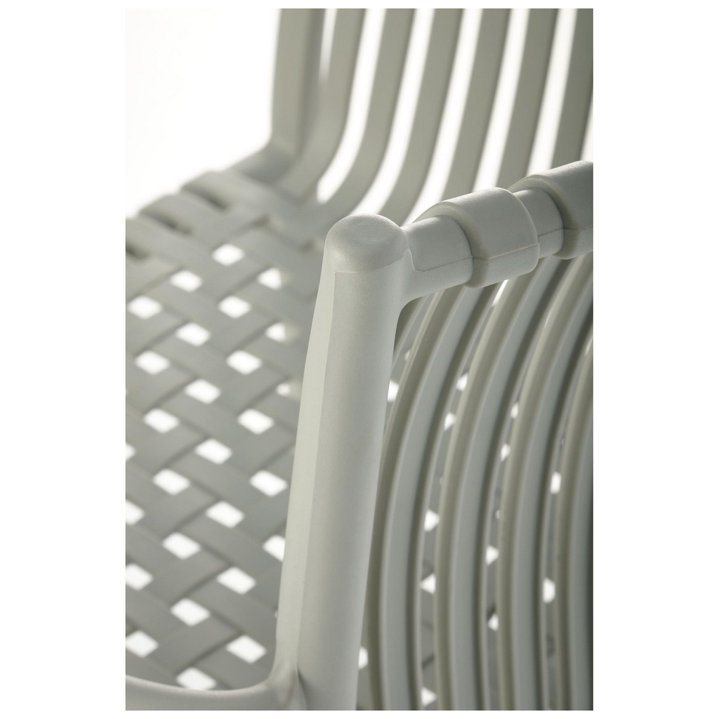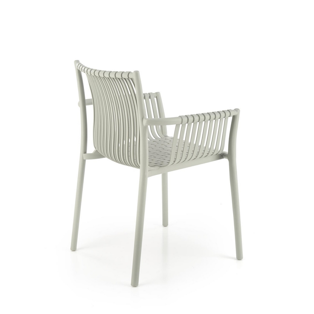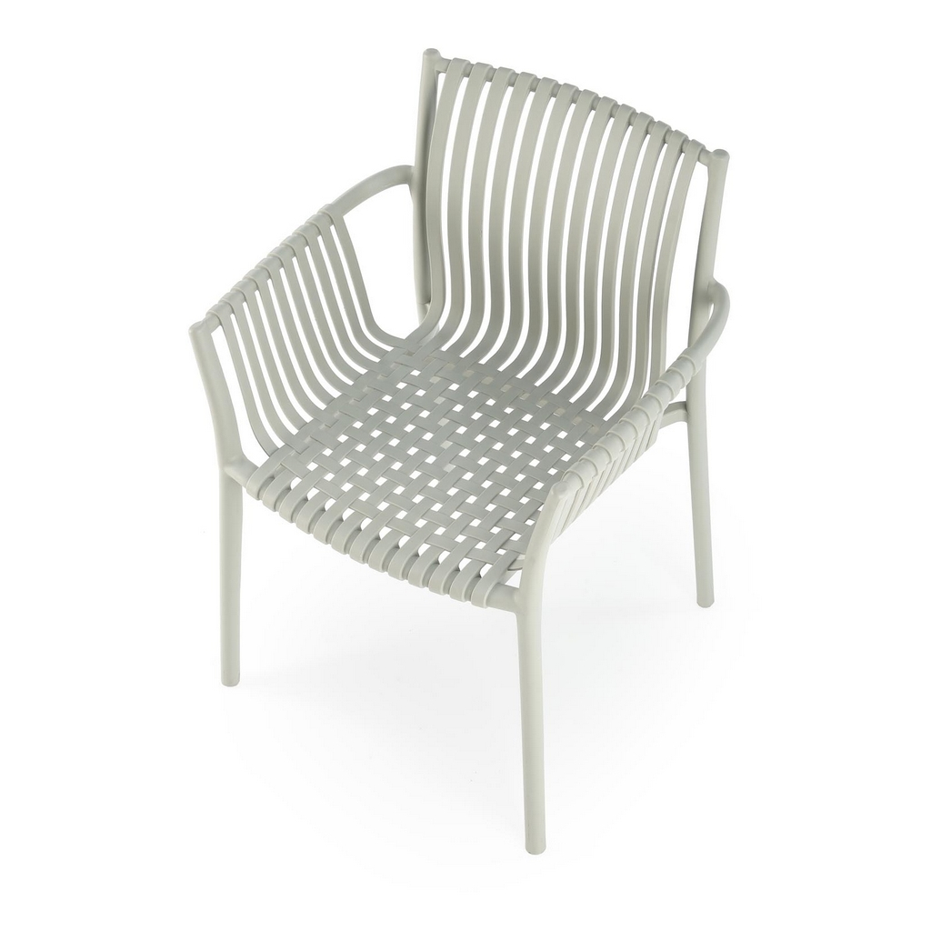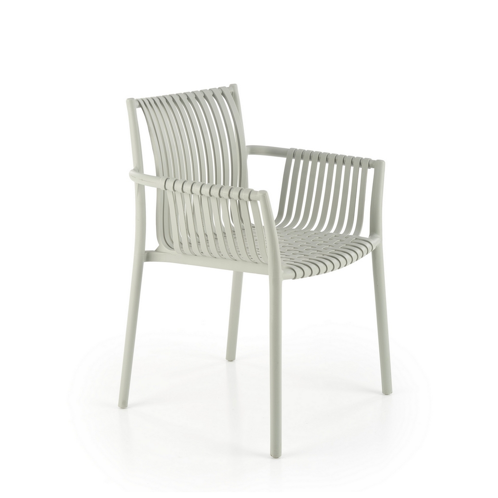 Celá konštrukcia stoličky je totiž z polypropylénu – pevného plastu, ktorý odolá bežným poveternostným vplyvom.