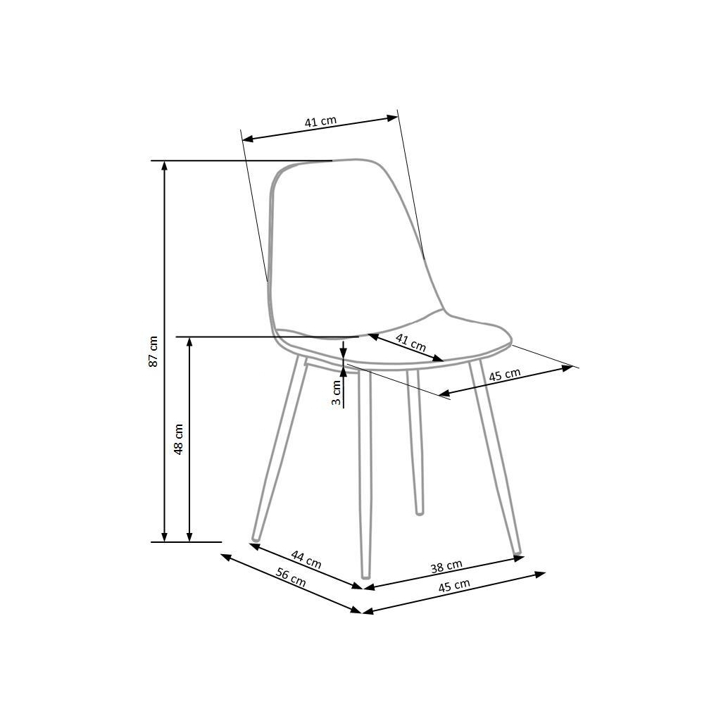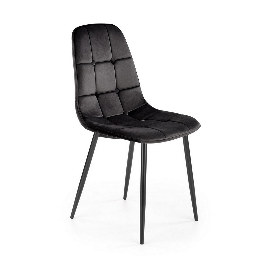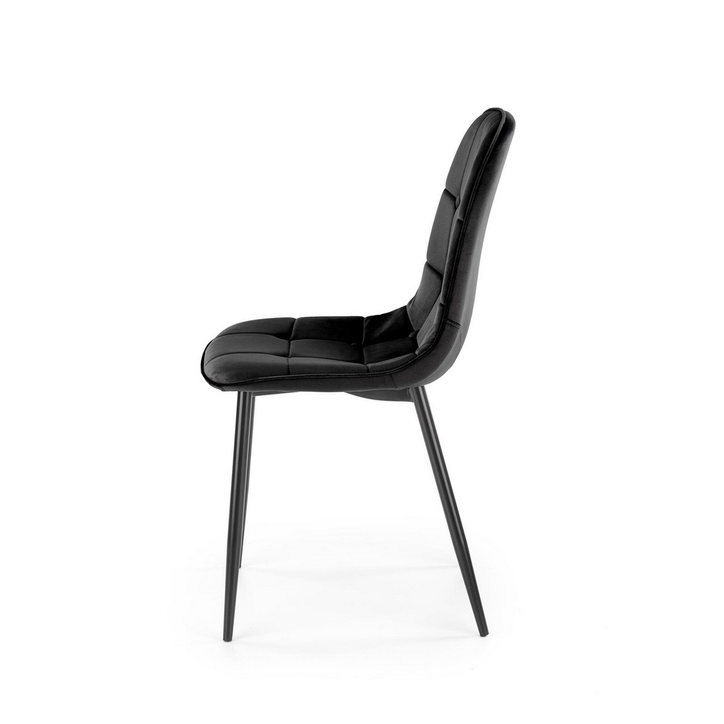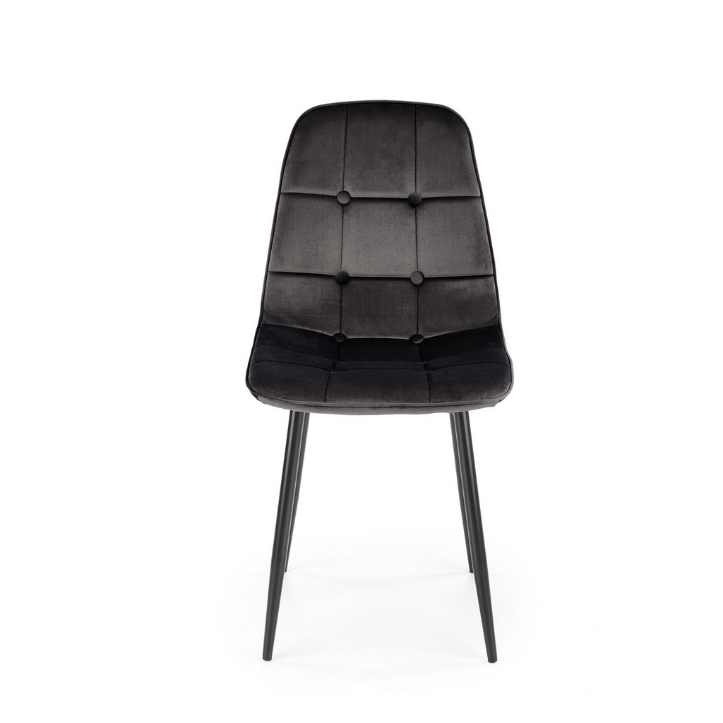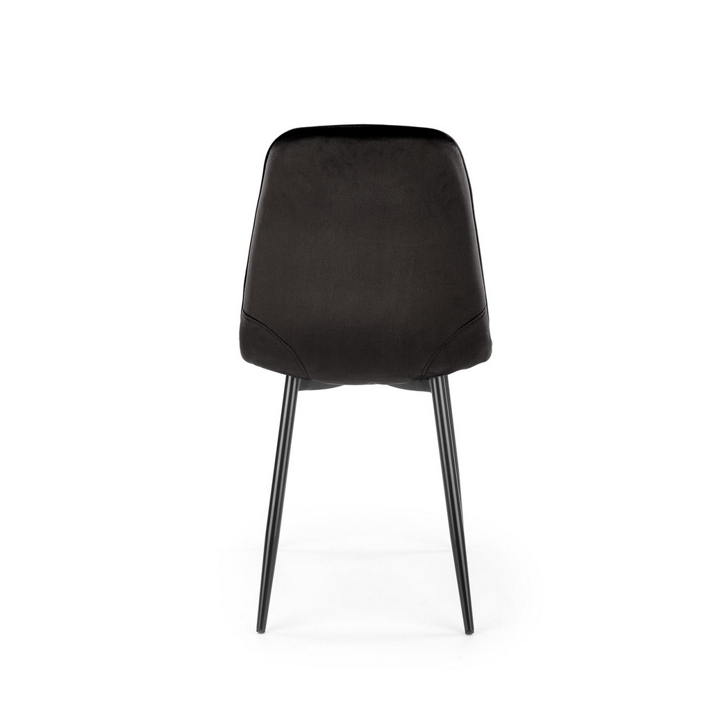 Jej luxusný vzhľad umocňuje poťah zo zamatovej tkaniny, ktorá je veľmi príjemná na dotyk a na operadle je ešte efektívne prešívaná. Polstrovaný sedák zaistí maximálne pohodlie. Kovové nohy stoličky zaistia úplnú stabilitu.