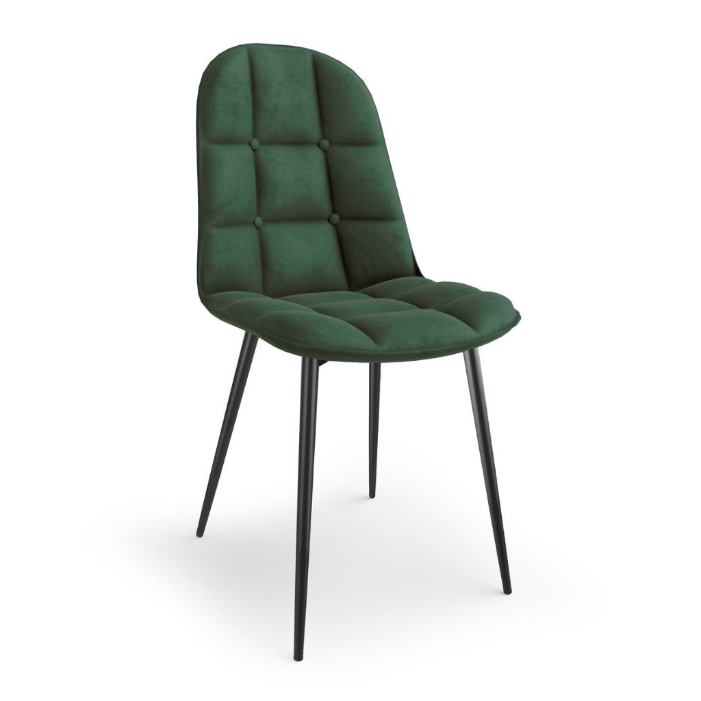 Jej luxusný vzhľad umocňuje poťah zo zamatovej tkaniny, ktorá je veľmi príjemná na dotyk a na operadle je ešte efektívne prešívaná. Polstrovaný sedák zaistí maximálne pohodlie. Kovové nohy stoličky zaistia úplnú stabilitu.