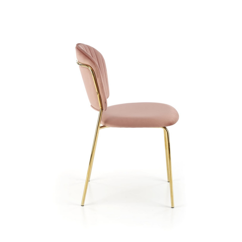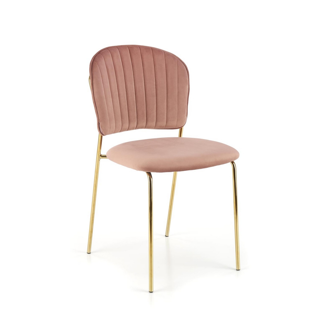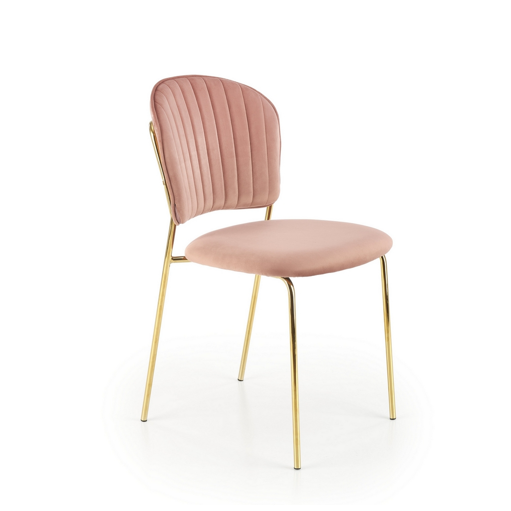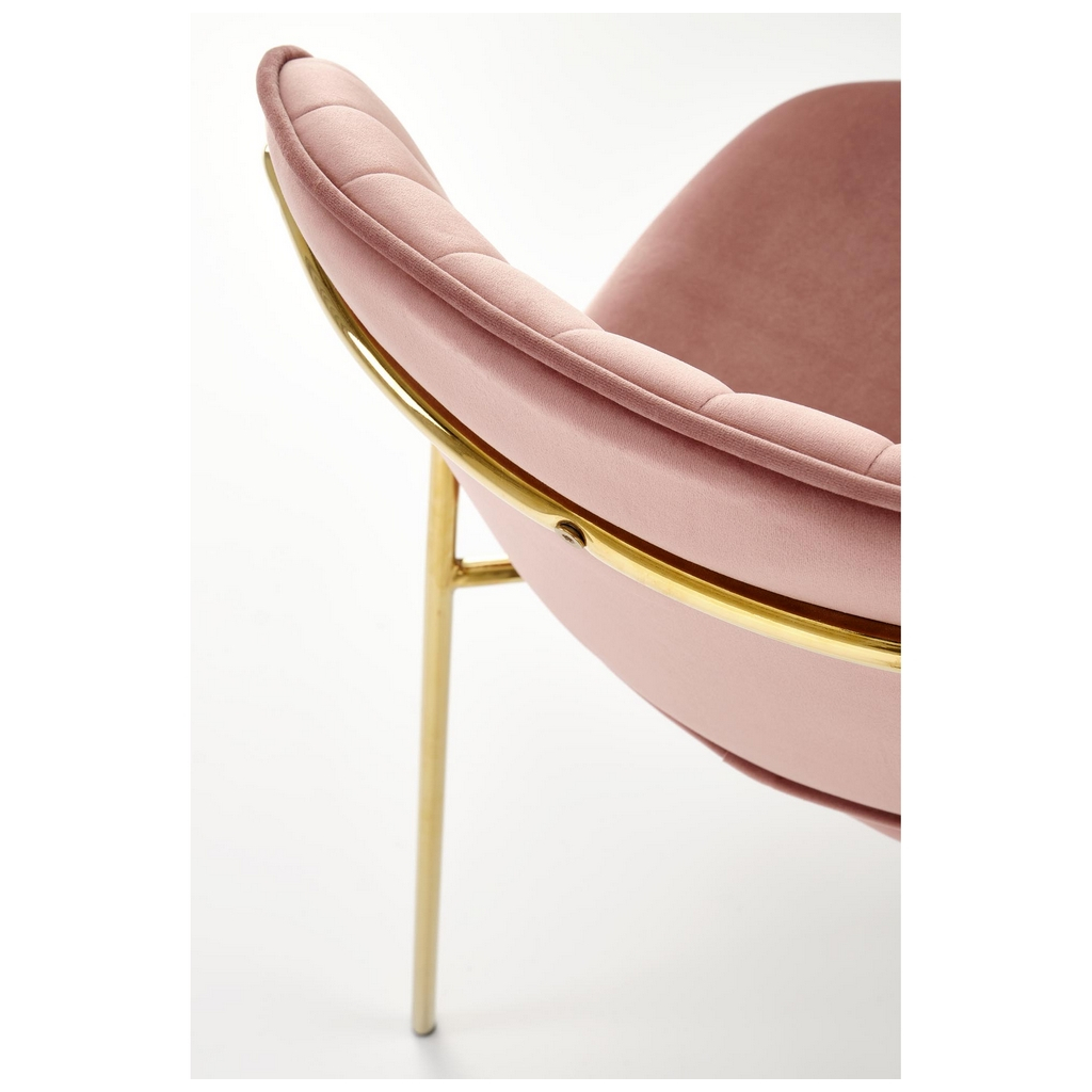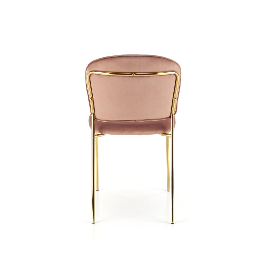 Sedák aj operadlo sú čalúnené hebkou látkou podobnou zamatu. Zvyšok konštrukcie je z nehrdzavejúcej ocele v zlatom lesku, ktorá sa vkusne dopĺňa s farbou poťahu.