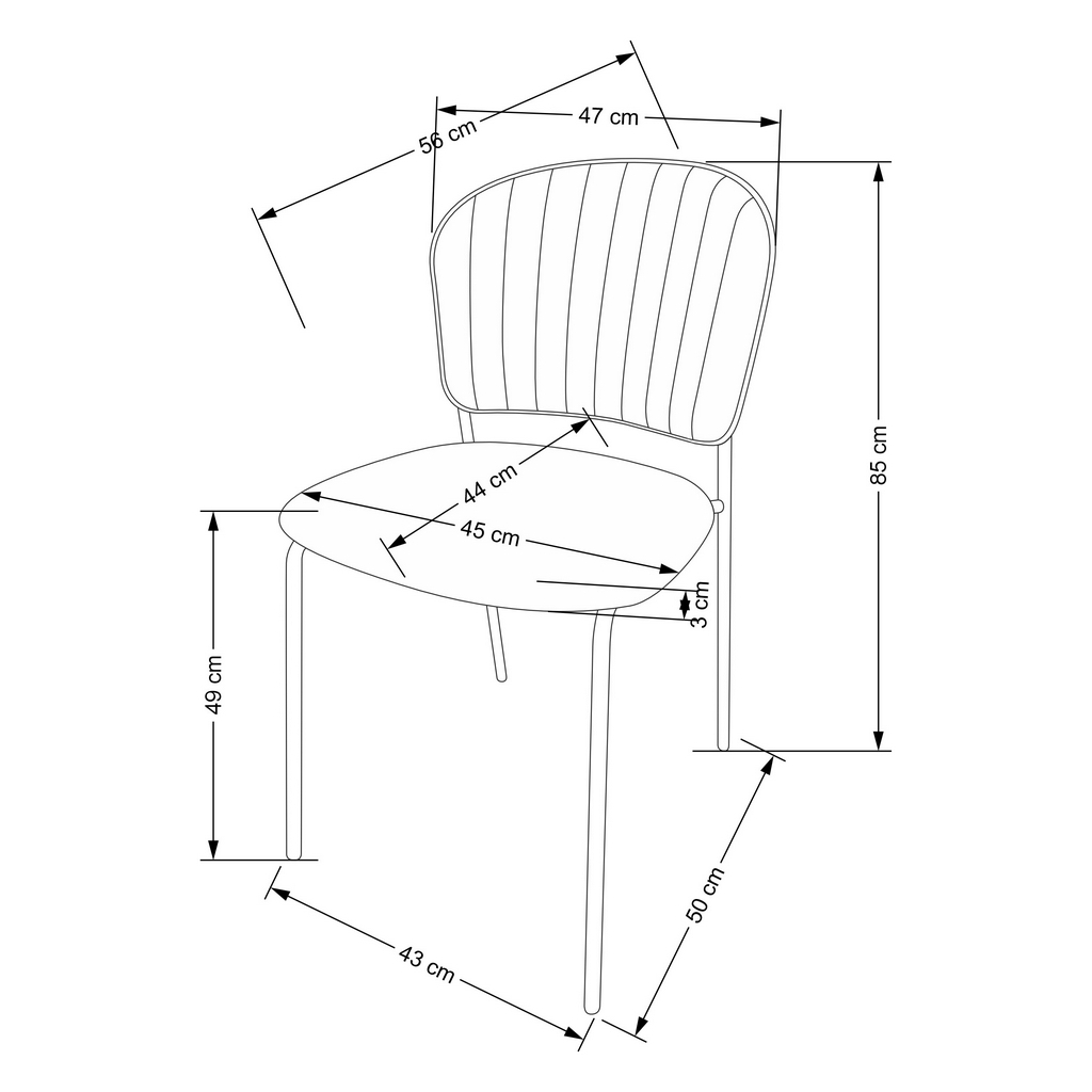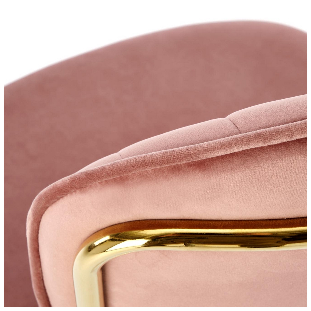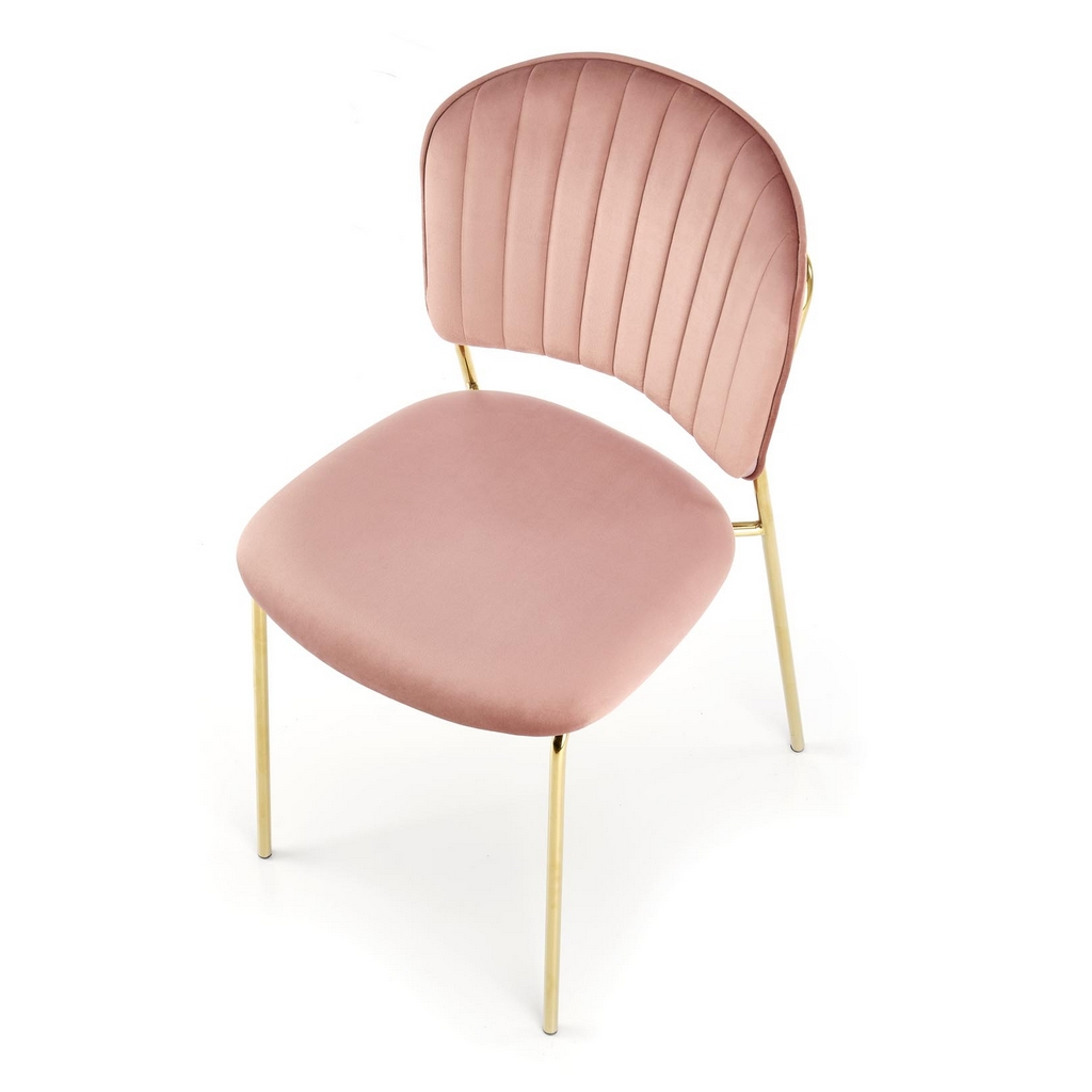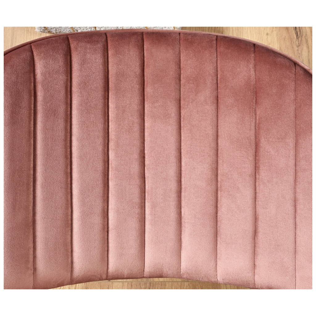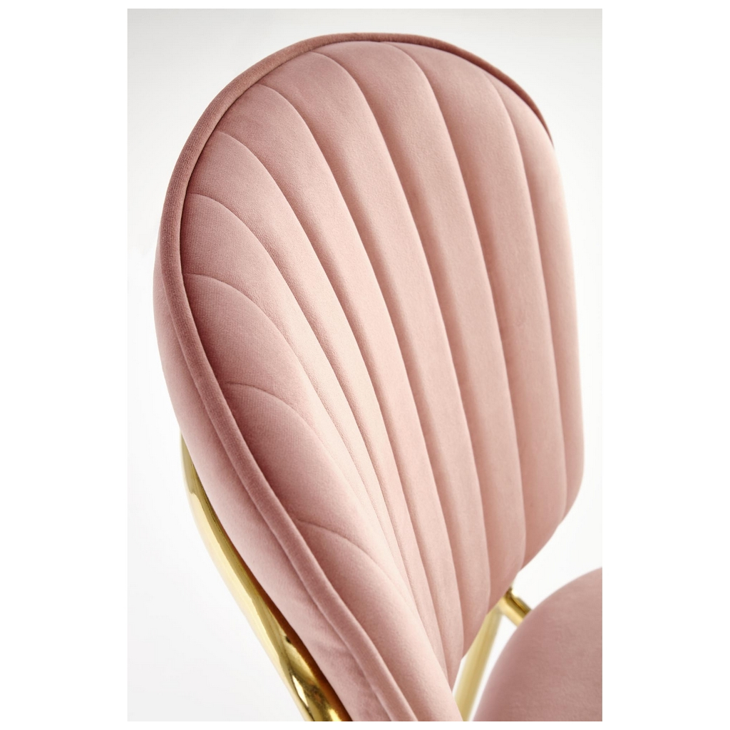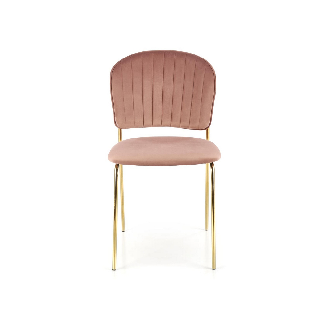 Sedák aj operadlo sú čalúnené hebkou látkou podobnou zamatu. Zvyšok konštrukcie je z nehrdzavejúcej ocele v zlatom lesku, ktorá sa vkusne dopĺňa s farbou poťahu.