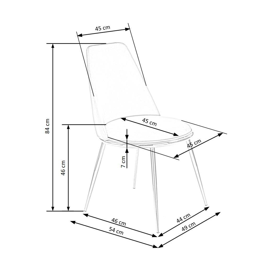 Sedadlo je potiahnuté zamatovou látkou, takže sedenie bude skutočný zážitok. Nohy sú zase z chrómovanej ocele v zlatej farbe. Stoličke zaistí potrebnú stabilitu a nosnosť 100 kg.