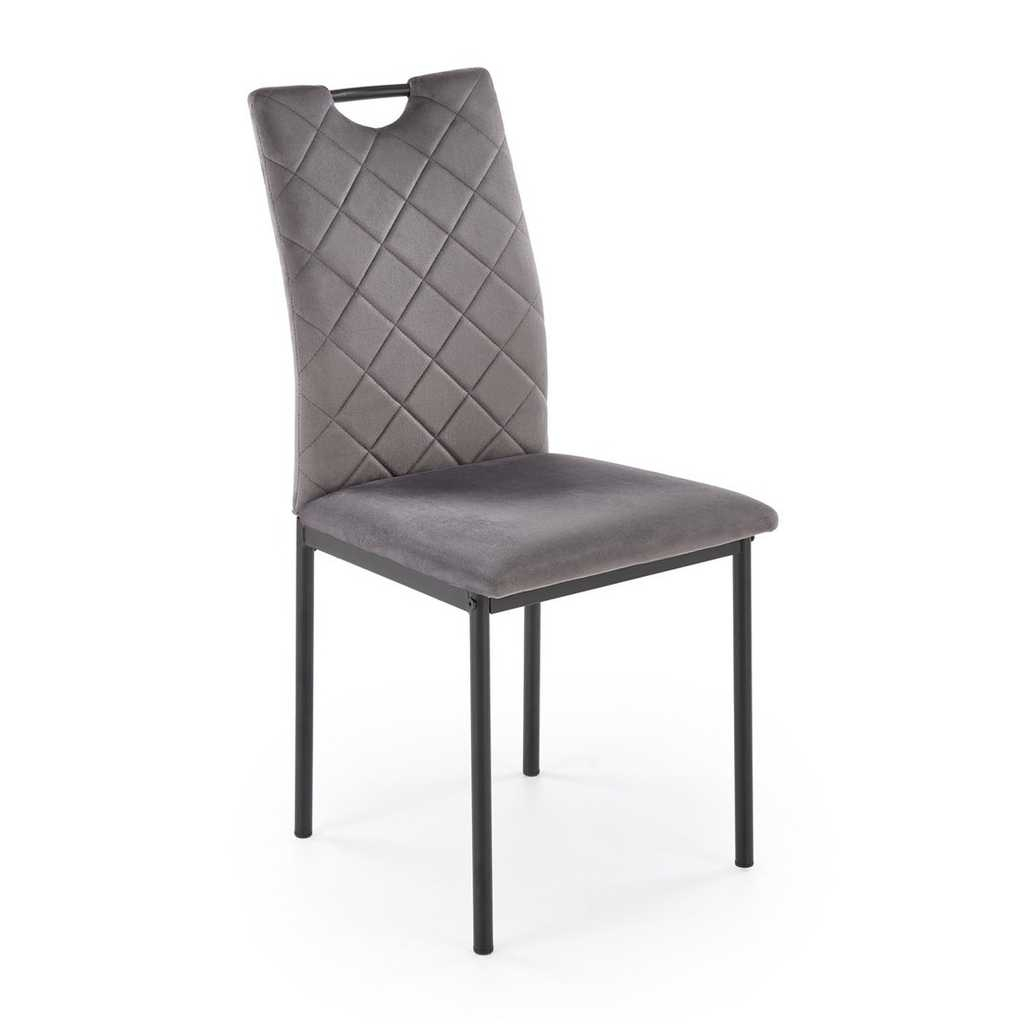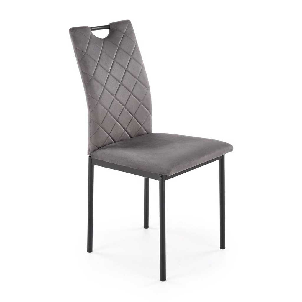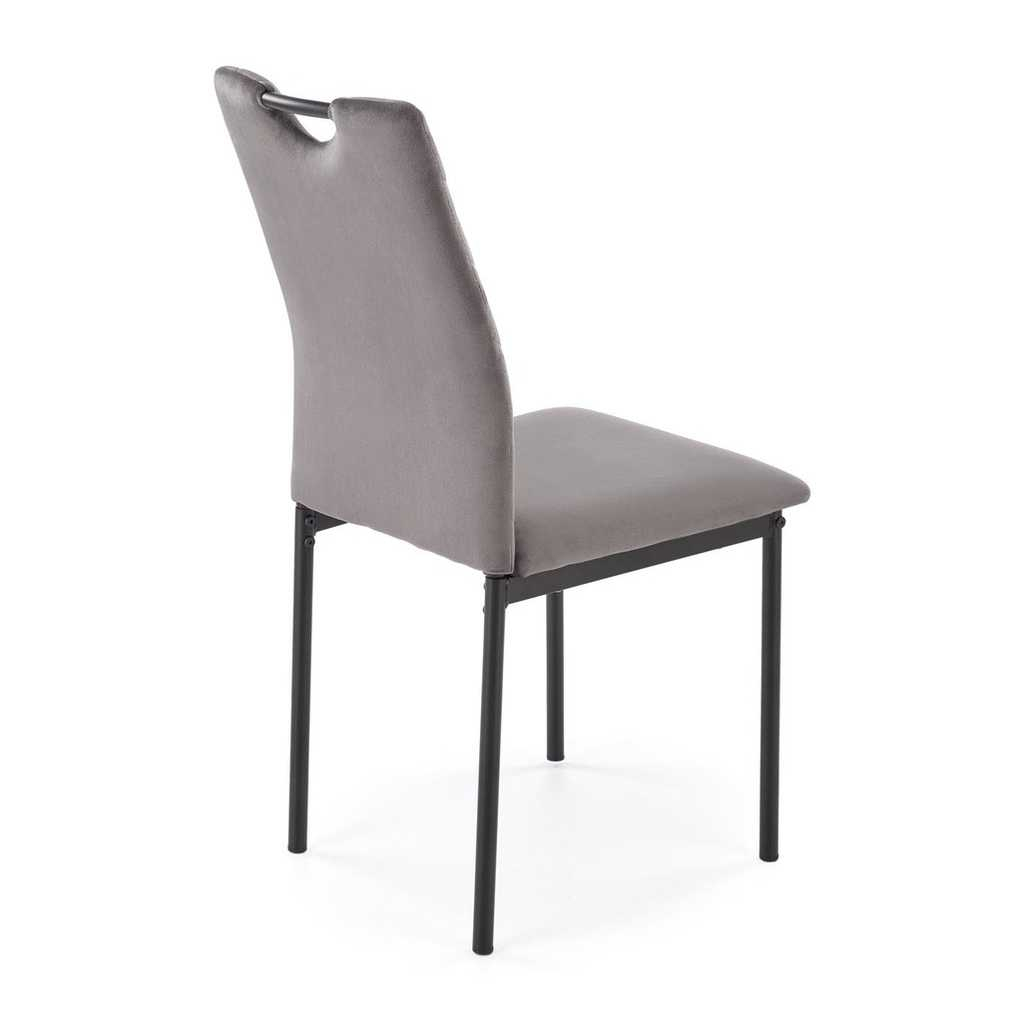 Čalúnené sedadlo a operadlo z látky s jemným zamatovým povrchom zaručujú pohodlné sedenie aj pri dlhšom používaní, zatiaľ čo pevná kovová podnož poskytuje stabilitu a spoľahlivosť. Jedálenská stolička Lucaria nesie záťaž až do 120 kg, vďaka čomu je nielen štýlová, ale aj funkčná.