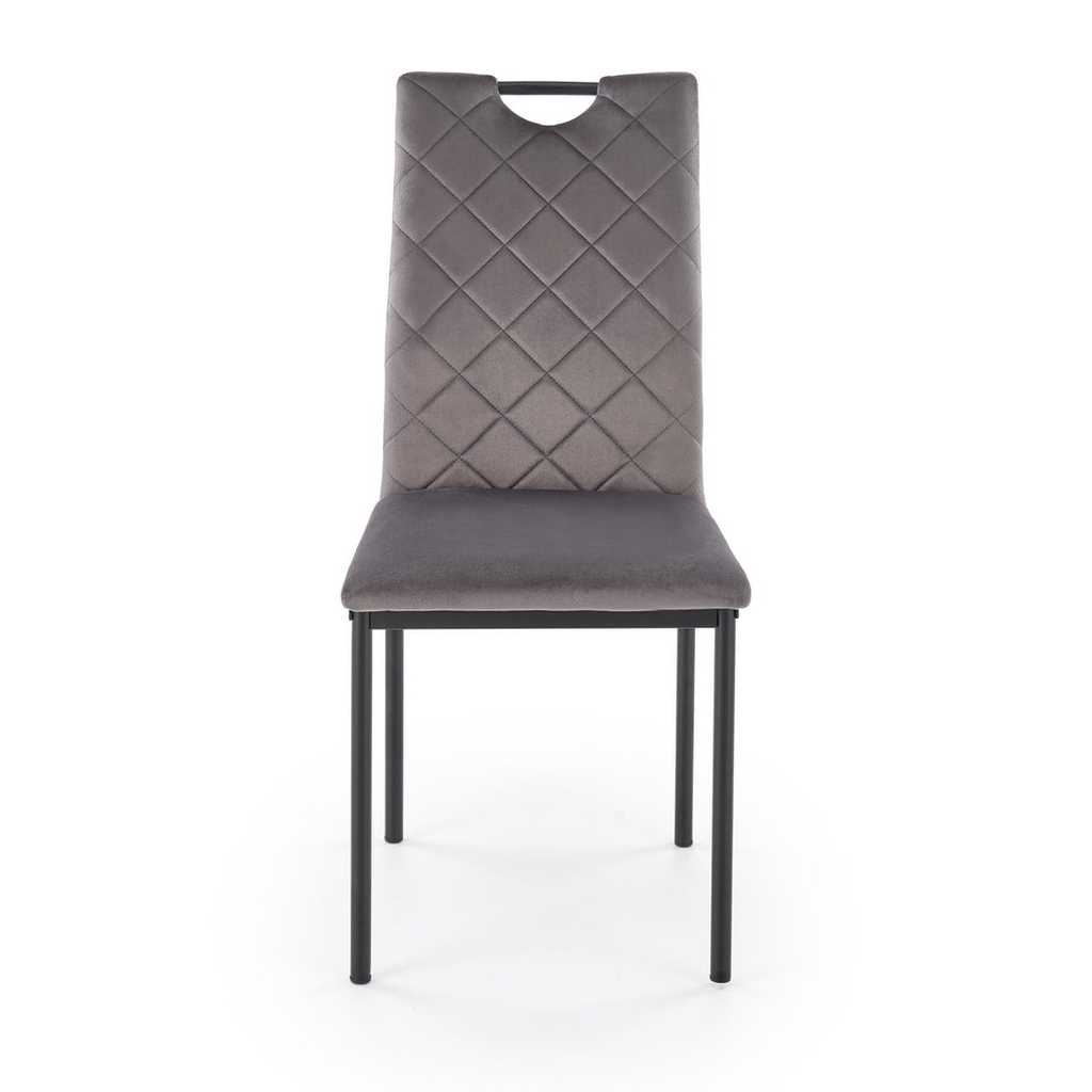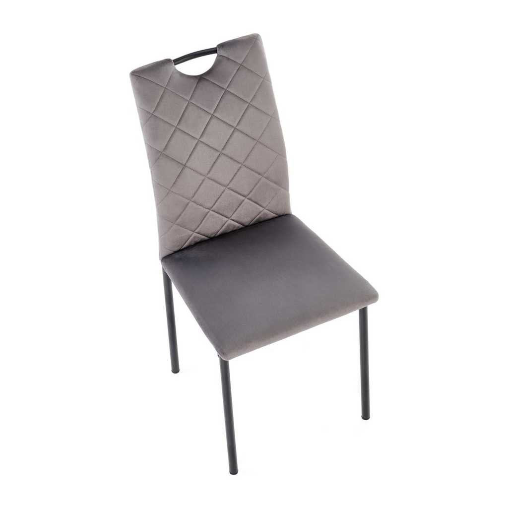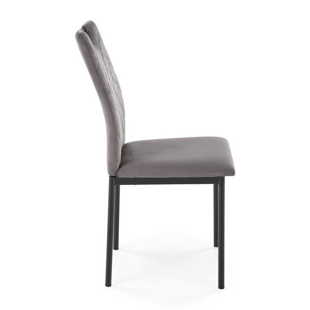 Čalúnené sedadlo a operadlo z látky s jemným zamatovým povrchom zaručujú pohodlné sedenie aj pri dlhšom používaní, zatiaľ čo pevná kovová podnož poskytuje stabilitu a spoľahlivosť. Jedálenská stolička Lucaria nesie záťaž až do 120 kg, vďaka čomu je nielen štýlová, ale aj funkčná.