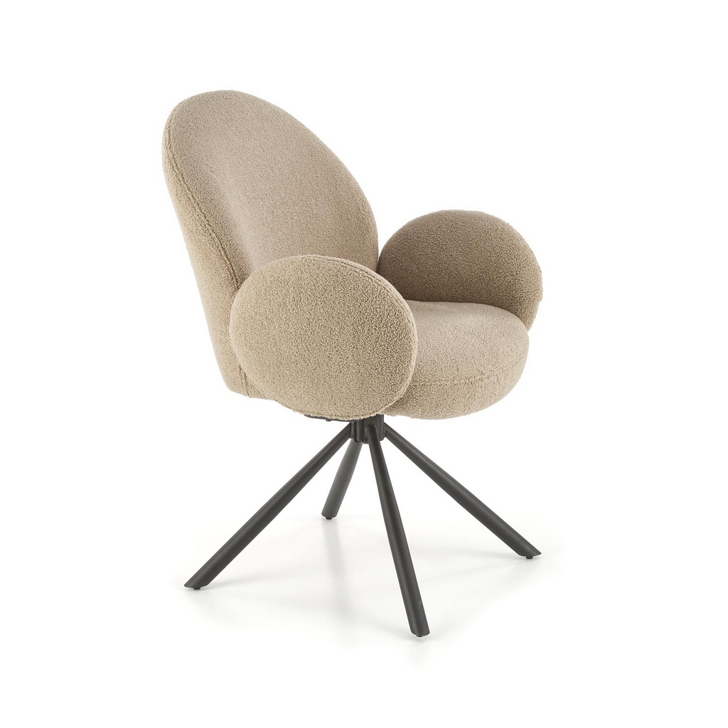 Jedálenská stolička Lumpy celkovým poňatím svojho sedadla pripomína kreslo, má totiž mäkučké čalúnenie a charakteristicky tvarované podrúčky. To všetko je potiahnuté príjemným plyšom.