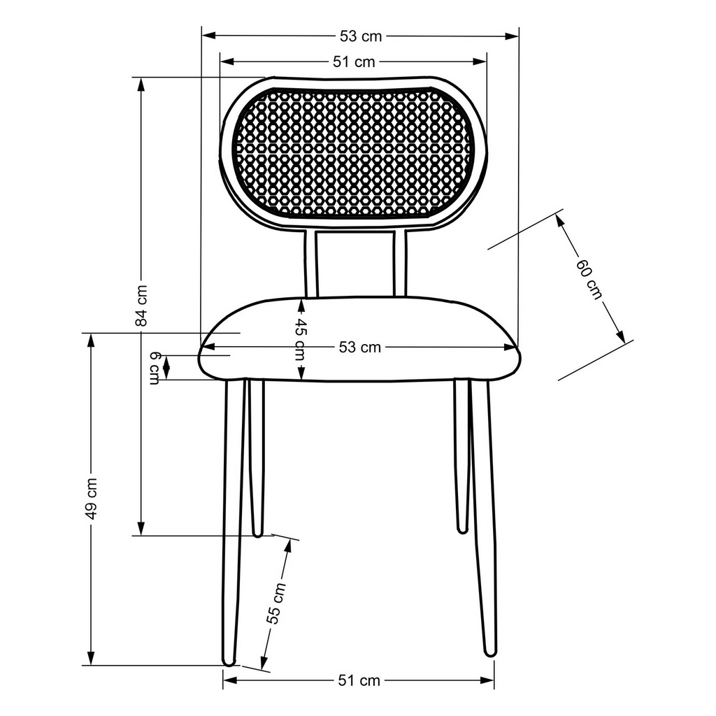 Kostra stoličky je z čiernej práškovanej ocele. Tá unesie až 100 kg záťaže. O vaše pohodlie sa potom postará sedák čalúnený zamatovou látkou.