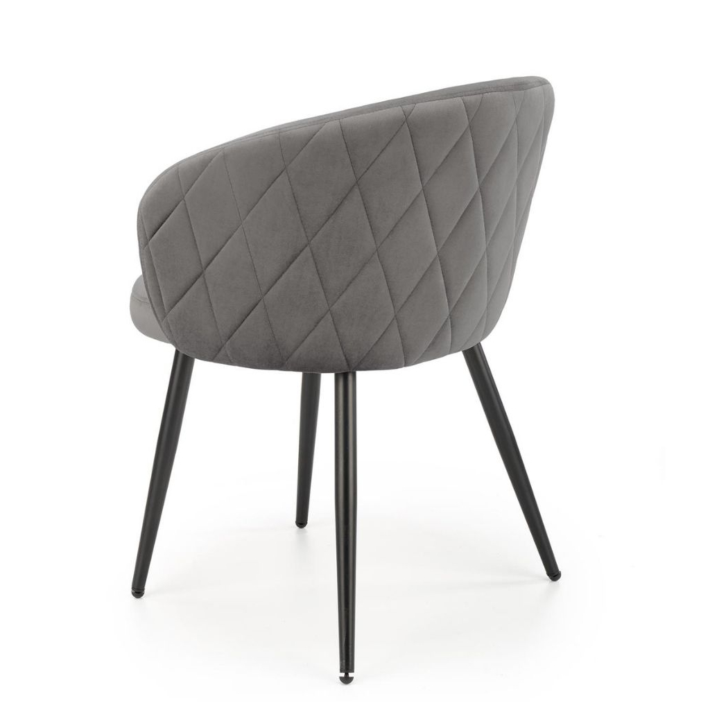 Jej luxusný vzhľad umocňuje poťah z odolnej tkaniny, ktorý je veľmi príjemný na dotyk a je efektne prešívaný aj na vonkajšej strane operadla. Čalúnený sedák sa postará o maximálne pohodlie. Kovové nohy poskytujú stoličke absolútnu stabilitu.