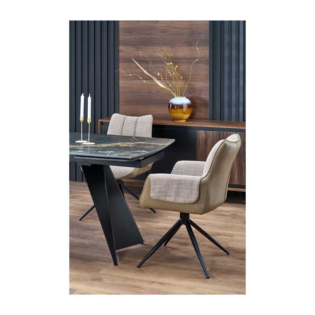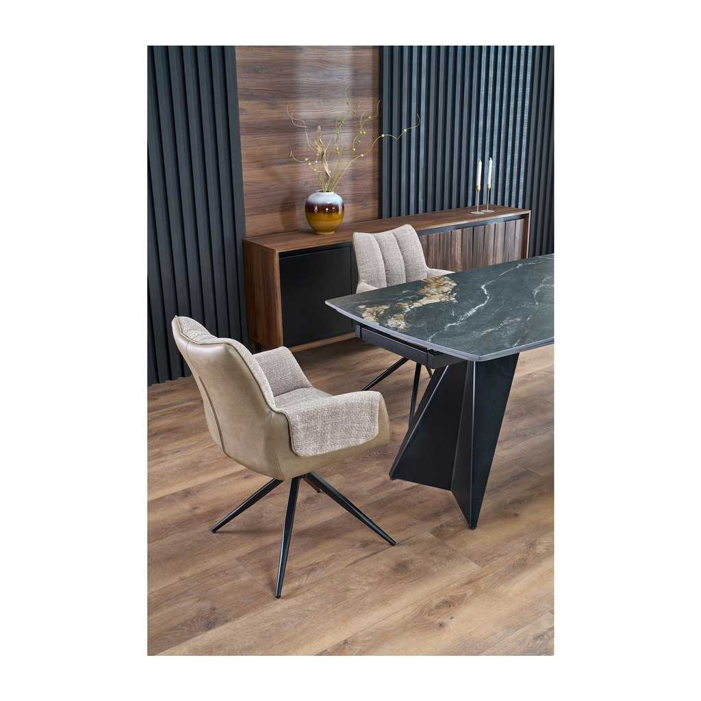 Jedálenská stolička Mindy predstavuje kombináciu pohodlia a moderného dizajnu, vhodná pre vaše jedálne alebo pracovné priestory. Vďaka kvalitnému prevedeniu so sedačkou z kože a látky ponúka príjemný povrch a jednoduchú údržbu. Pevná kovová podnož zabezpečuje dlhodobú stabilitu aj pri nosnosti až 120 kg. Pohodlné operadlo a dostatočne široké sedadlo zvyšujú komfort pri sedení.