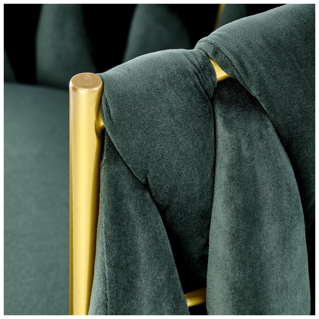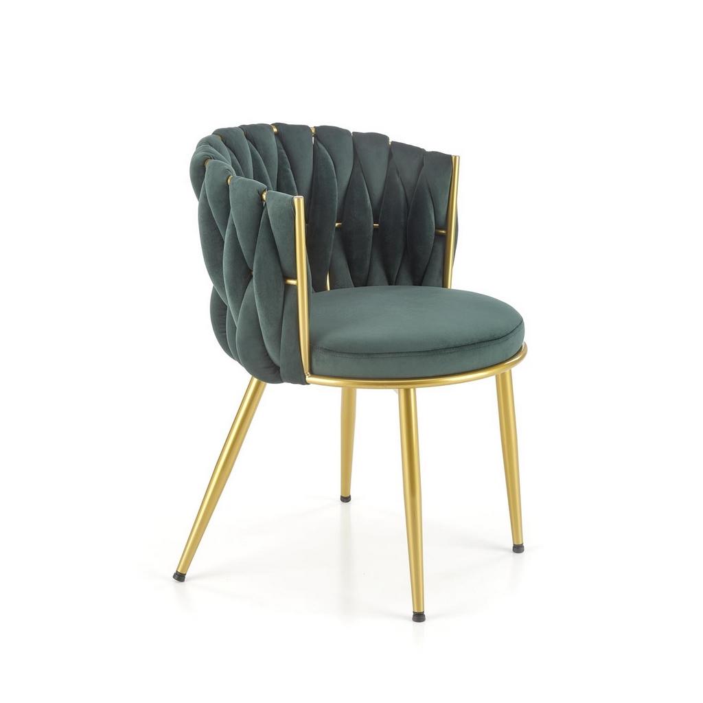Sedadlo aj operadlo sú potiahnuté látkou. Pri operadle má čalúnenie podobu pruhov prepletených medzi výstuhami – tie sú rovnako ako nohy stoličky z práškovanej ocele v zlatom lesku.