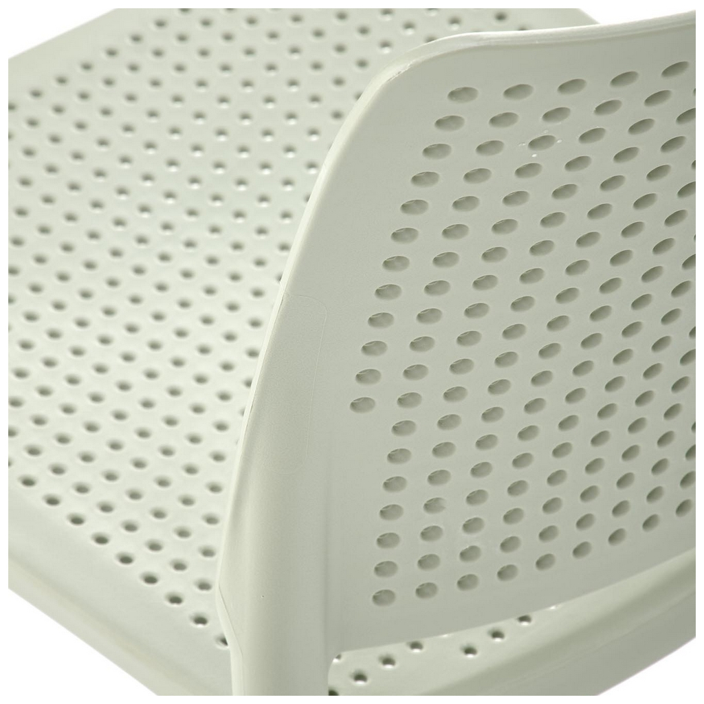 Celá konštrukcia stoličky je totiž z polypropylénu – pevného plastu, ktorý odolá bežným poveternostným vplyvom.