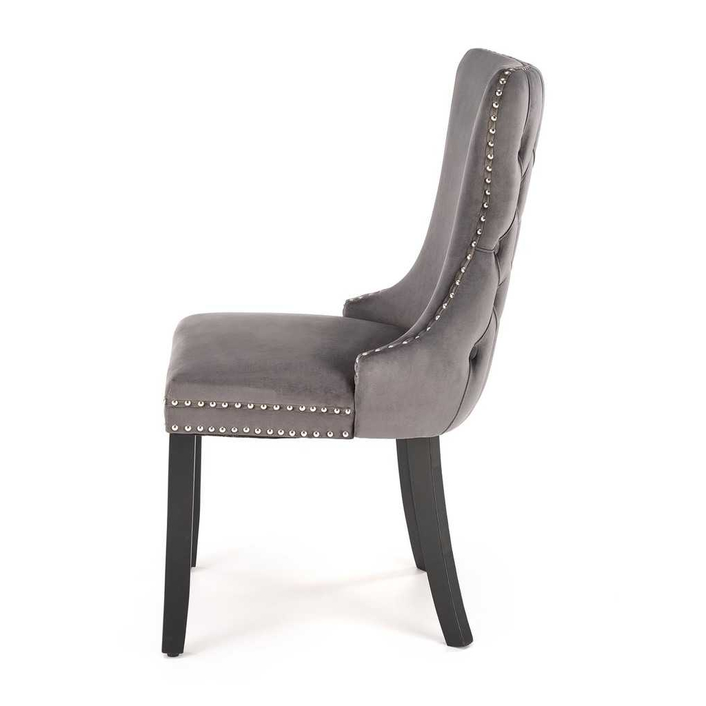 Jedálenská stolička Noah zaujme svojím elegantným vzhľadom a prepracovanými detailmi. Čalúnenie zo zamatovej látky prináša pocit luxusu a mäkkosti, čo zvyšuje pohodlie pri sedení. Ozdobné cvočky po obvode sedadla dodávajú stoličke moderný nádych, ktorý sa hodí do rôznych interiérov.