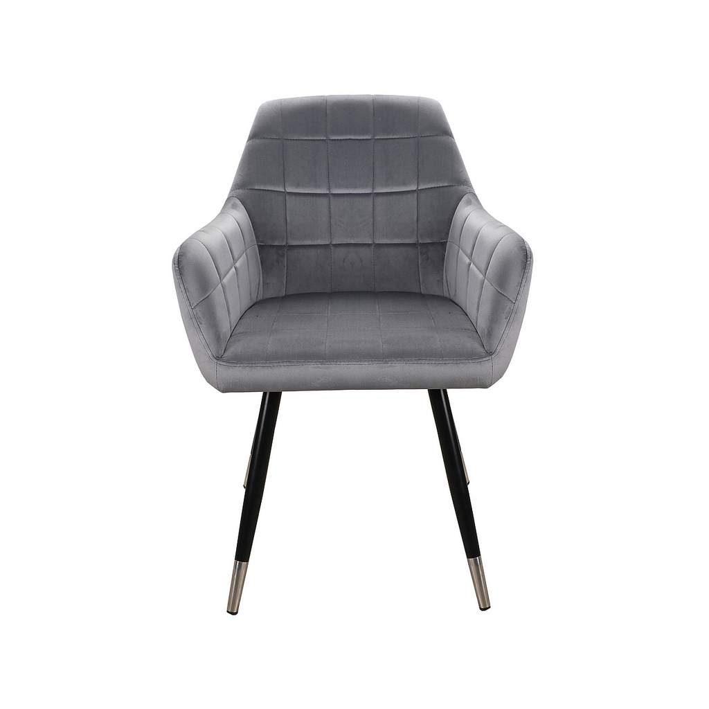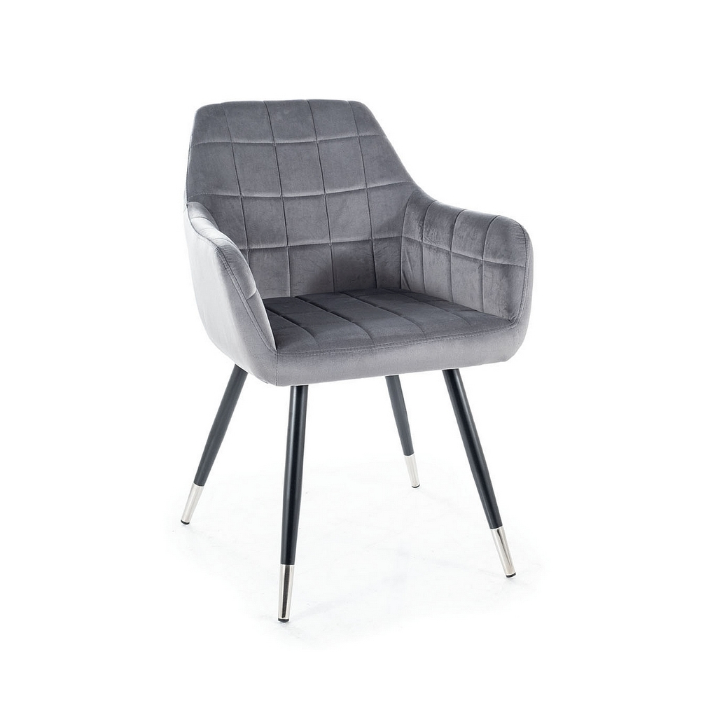 Štvornohá kovová podnož s ozdobným zakončením nielen, že je zárukou perfektnej stability, ale zároveň dodáva stoličke štýl. V kombinácii so sedákom potiahnutým zamatovo hebkou látkou s efektným prešívaním tvorí dohromady moderný a vkusný kúsok. Polstrovanie priamo nabáda k sadnutiu.