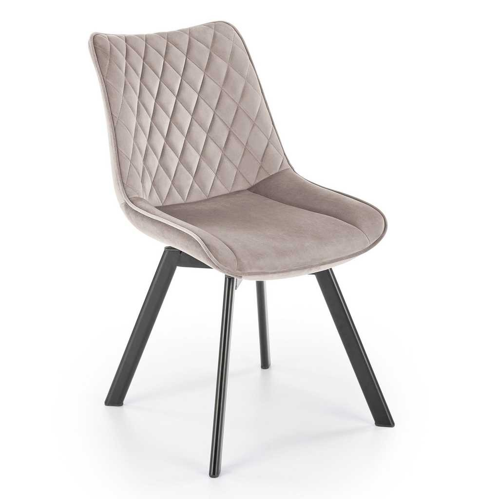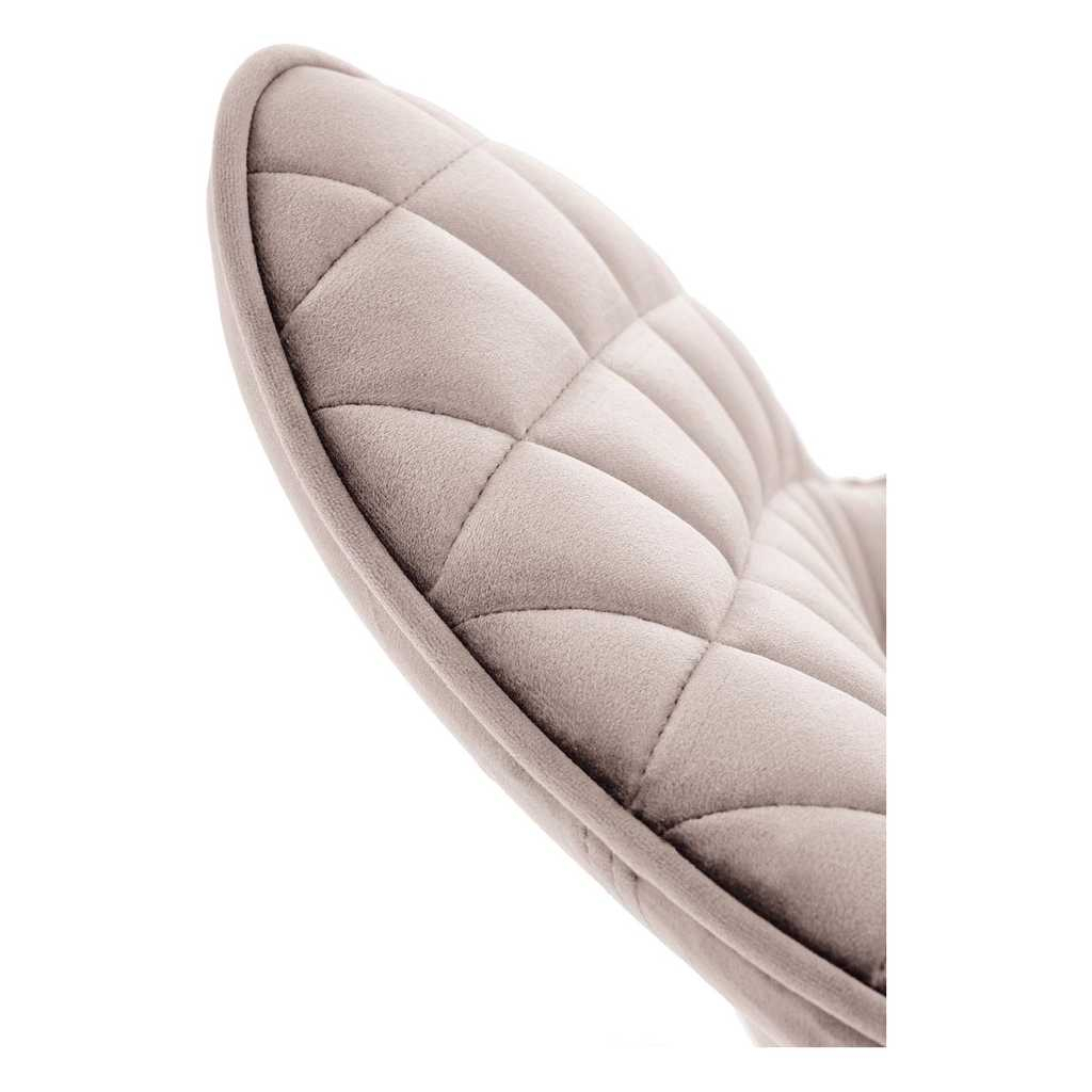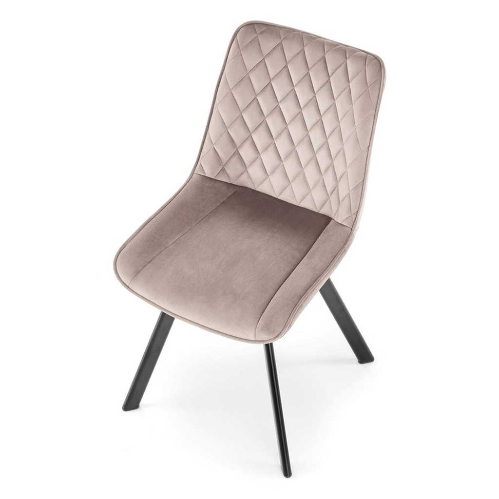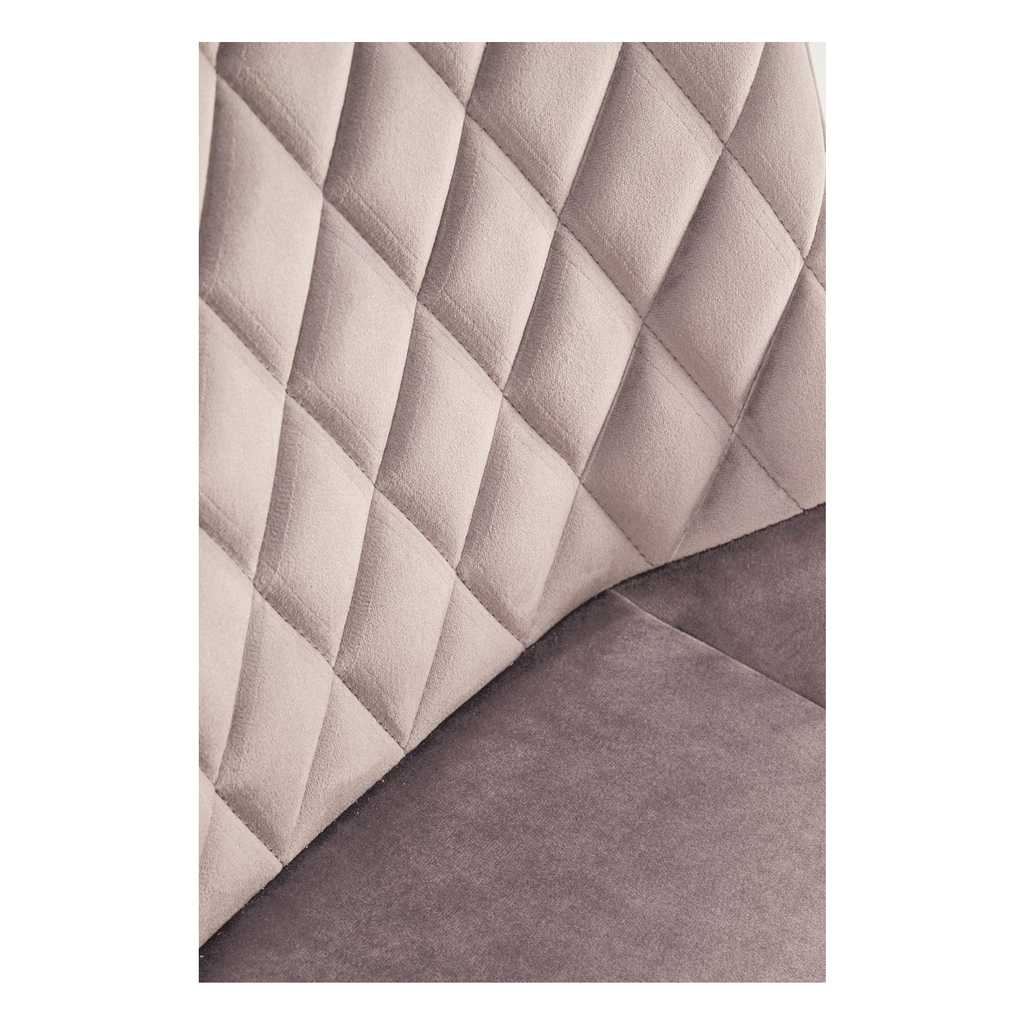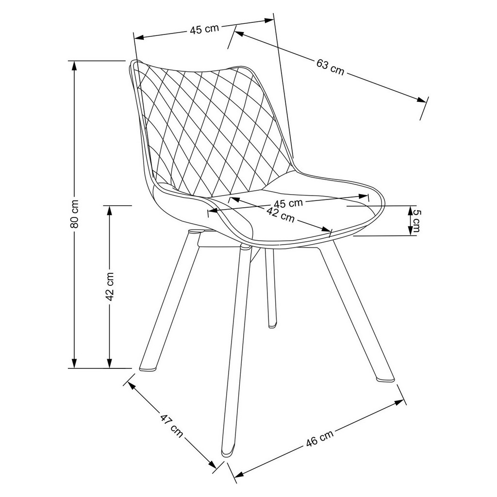 Sedadlo je čalúnené mäkkou látkou s diamantovým vzorom na operadle. Tento vkusný dizajnový prvok zvýrazňuje inak minimalistický vzhľad stoličky.